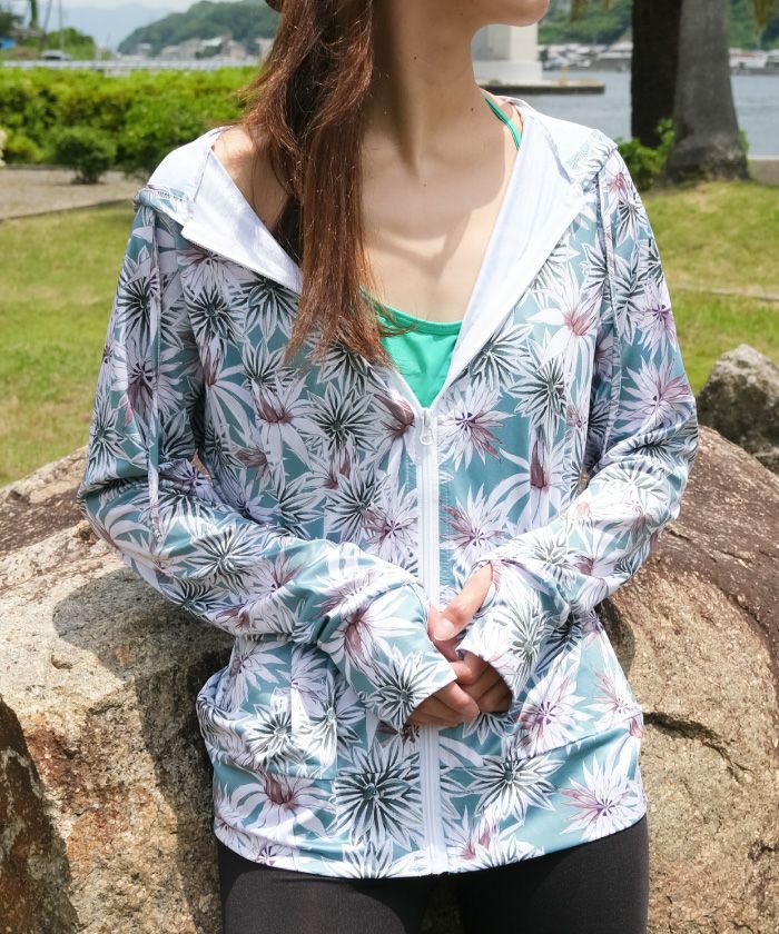 送料無料 柄ラッシュガードパーカー レディース M L LL ≪ゆうメール便配送20・代引不可≫ | アクアガレージ aquagarage