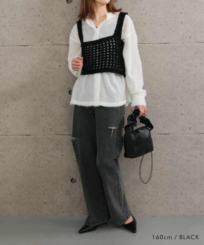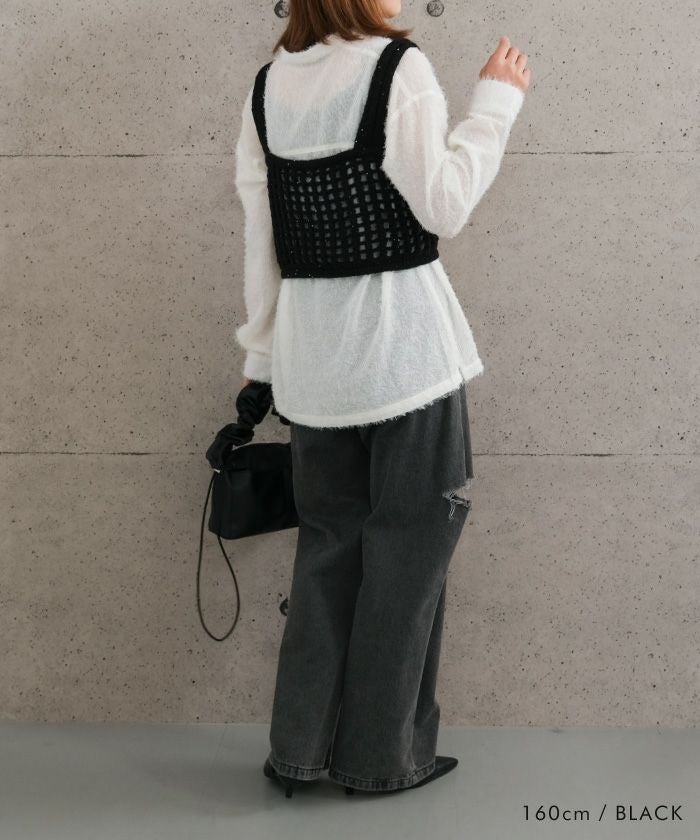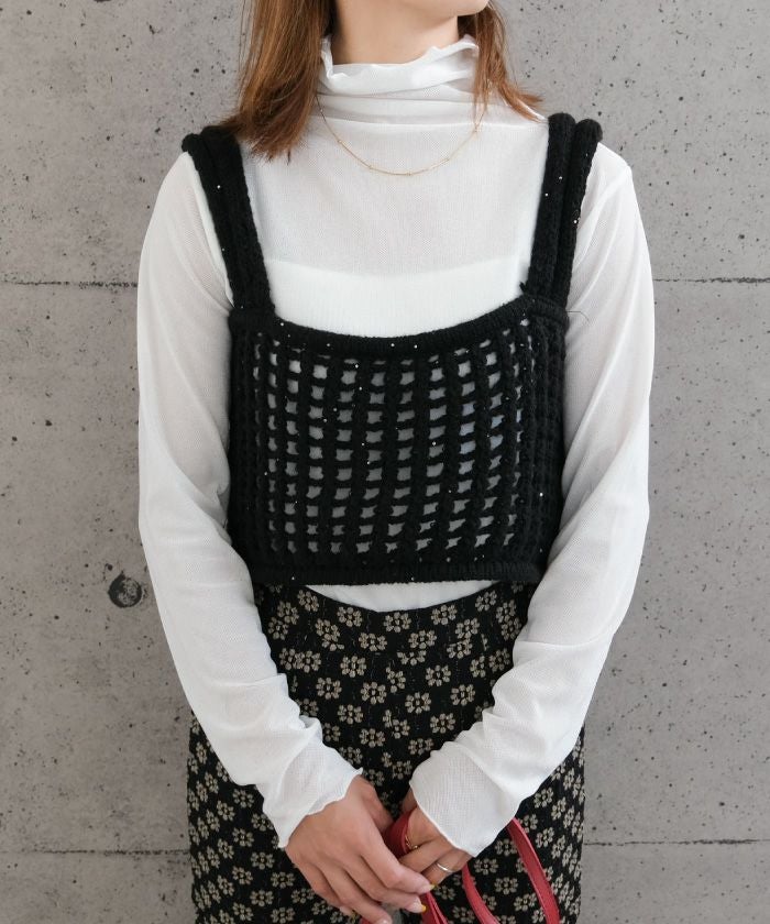送料無料 メッシュ編みニットビスチェ 春 夏 秋 M≪ゆうメール便配送30・代引不可≫ |アクアガレージ aquagarage
