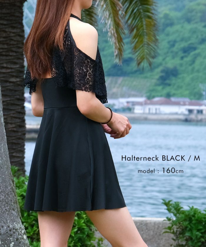 • ミニワンピース感覚で着れる!ネックデザインが選べるレースワンピース水着