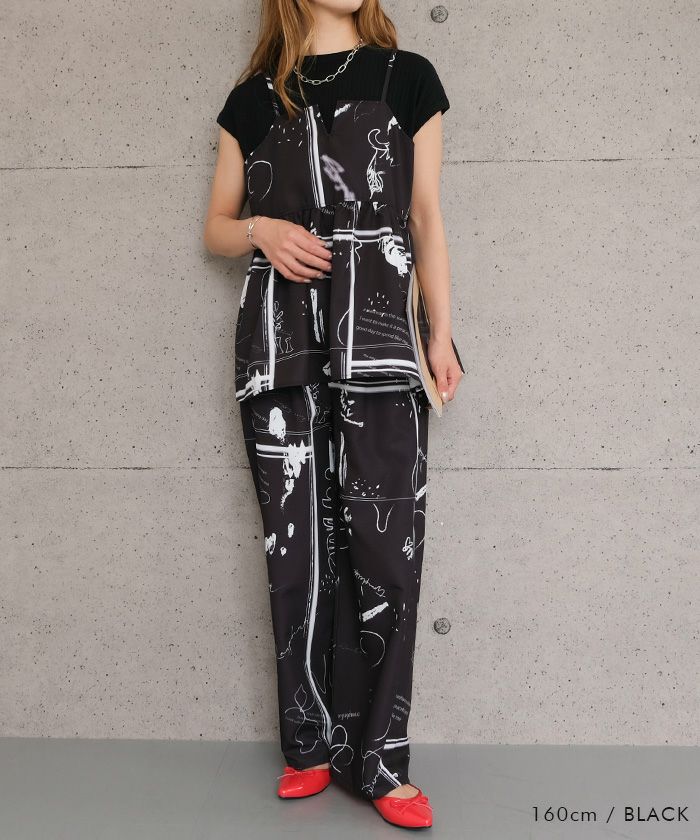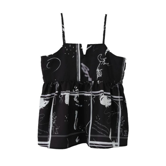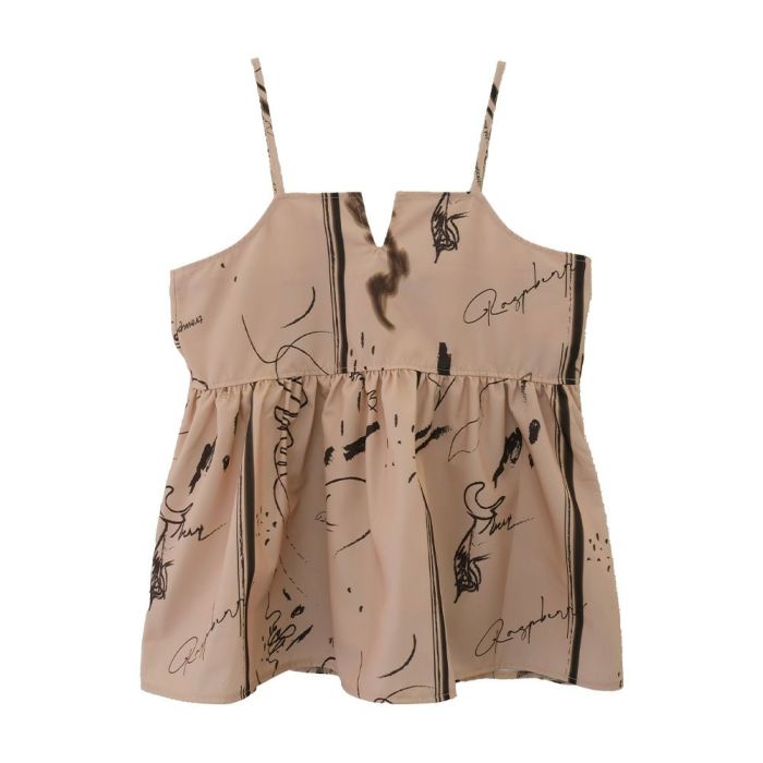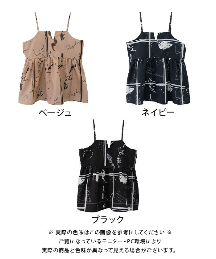 この英字柄ペプラムキャミソールは、カジュアルな英字プリントが特徴で、シンプルながらも個性的なスタイルを演出します。