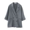 送料無料 リネンライクダブルブレスト半袖テーラードジャケット 春 夏 秋 M |アクアガレージ aquagarage