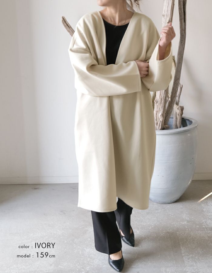• さらりと羽織れて程よいきちんと感。ポンチ生地のロング丈トッパーカーディガン