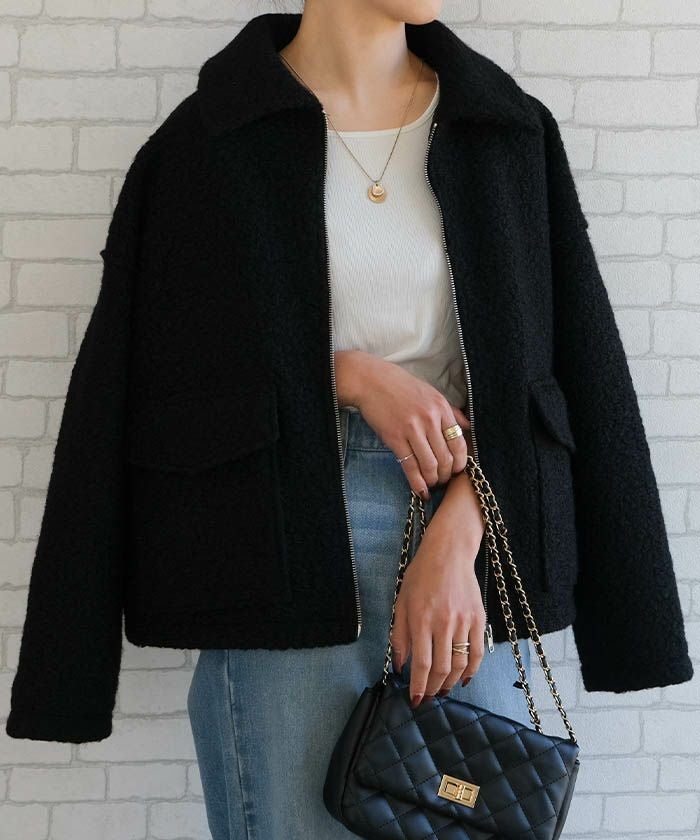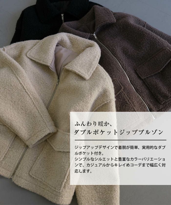• ふんわり暖か、ダブルポケットジップブルゾン
