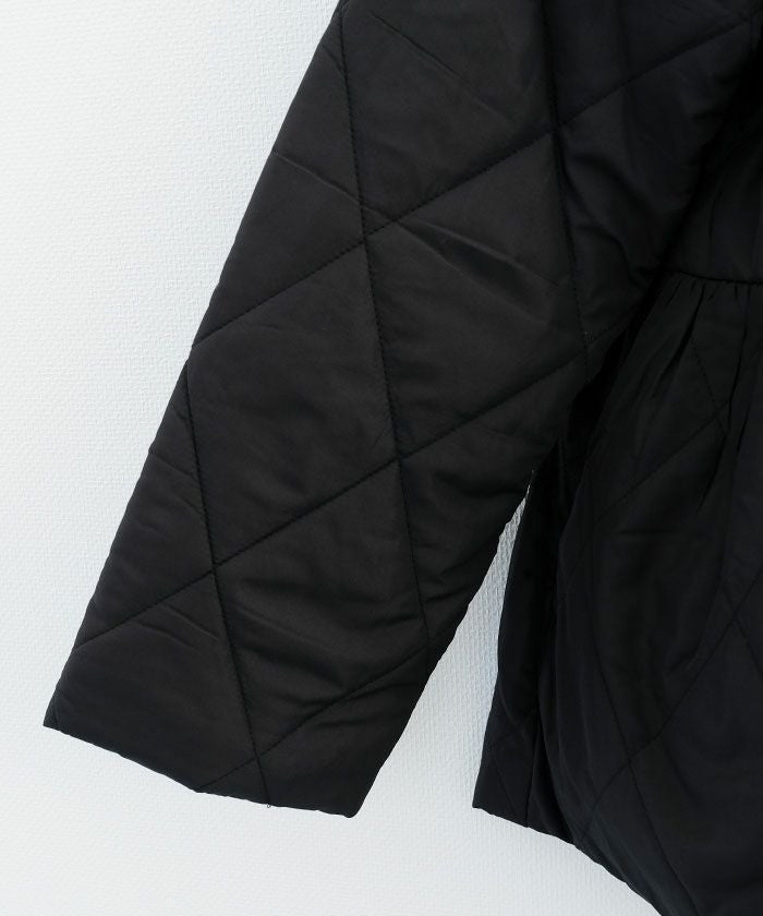 ダイヤキルトのふっくらとした表情が印象的な、フェミニンな雰囲気のダウンジャケット。