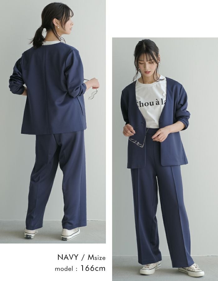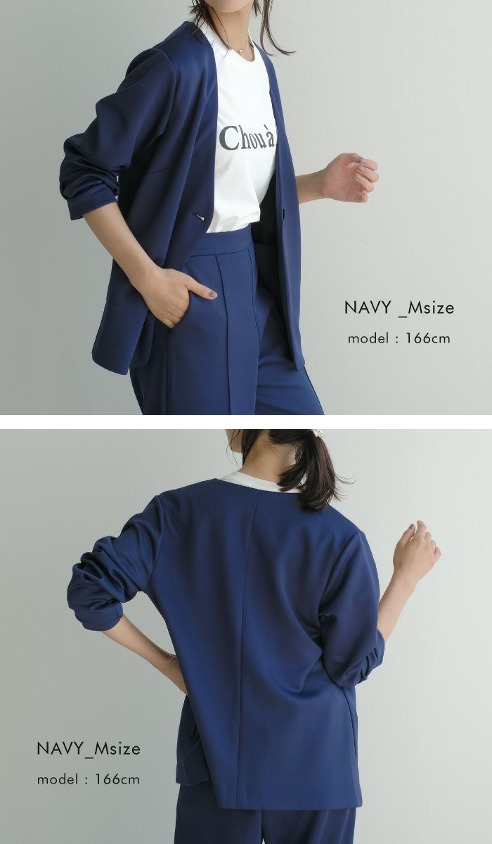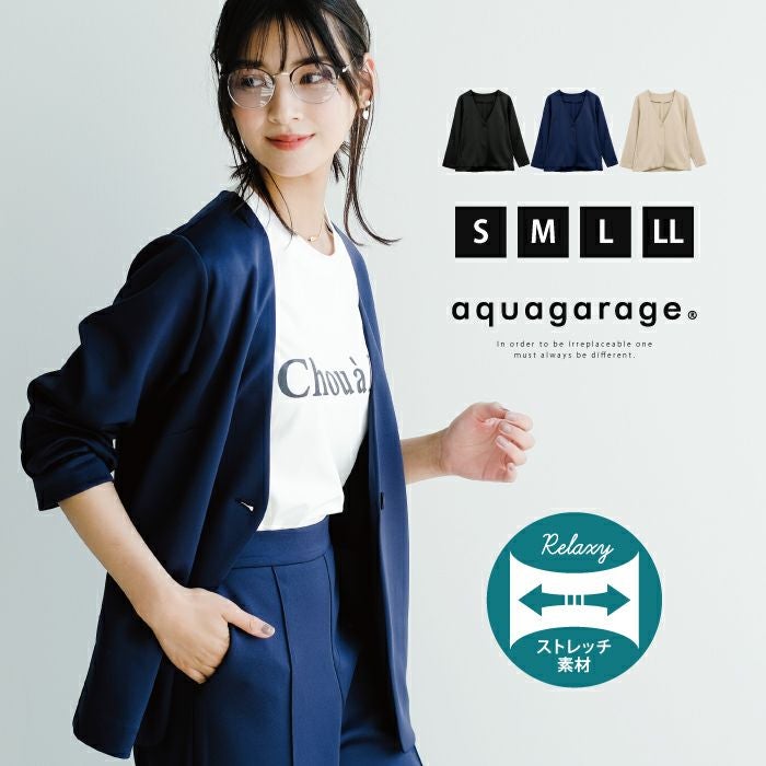 送料無料 【セットアップ可】リラクシーノーカラーロング丈ジャケット セットアップ可 レディース 春 秋 冬 長袖 S M L LL ≪ゆうメール便配送30・代引不可≫ | アクアガレージ aquagarage