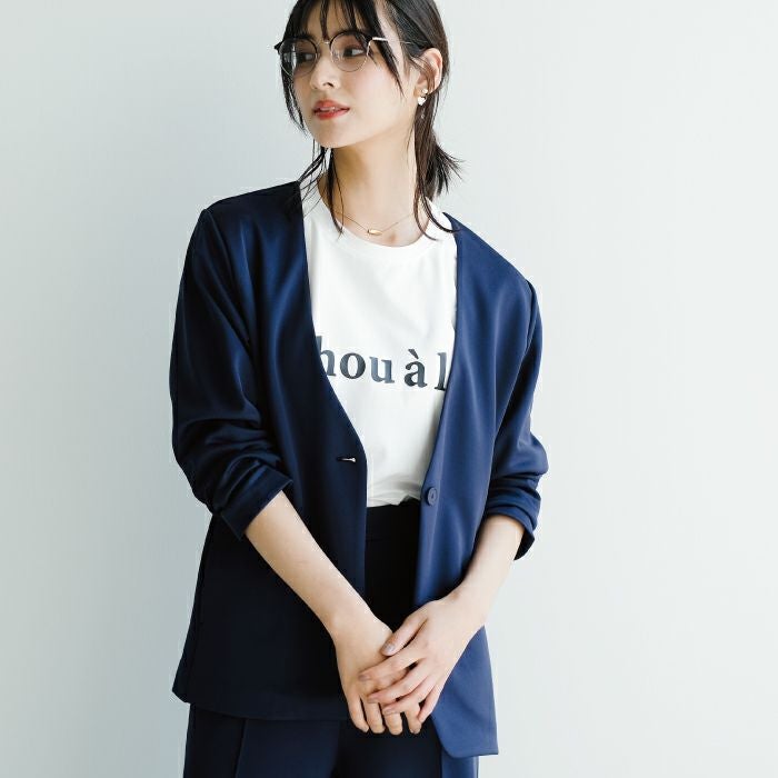 長時間着ていても疲れないストレスフリーなジャケット。 伸縮性とハリのある素材できちんと感を叶えるシルエットが魅力。 オフィスにはもちろん、リモートワークにも使える優秀な一枚。