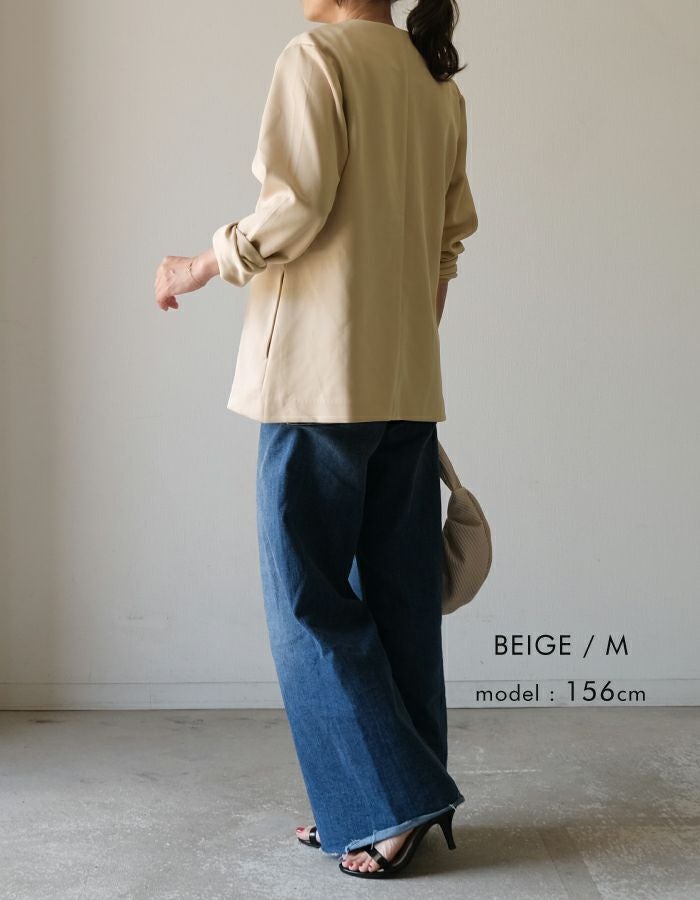 カジュアルにも、キレイめでも何にでも合わせやすいジャケットです。