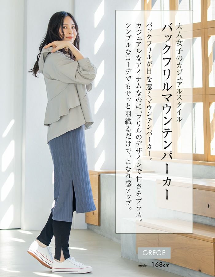 • バックフリルが目を惹くマウンテンパーカー。