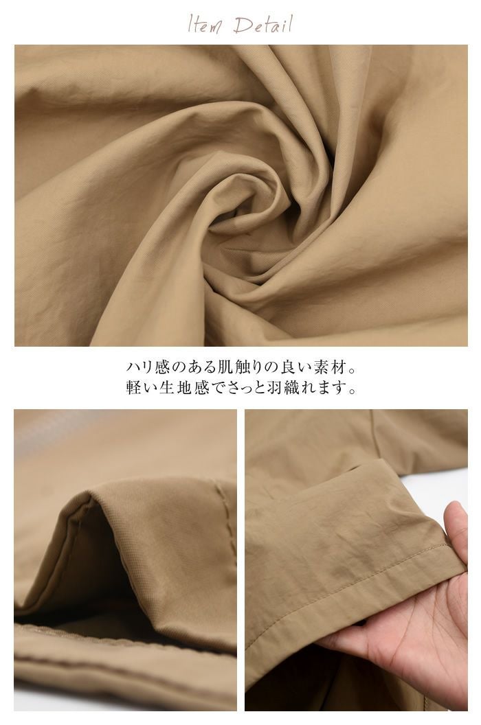 ハリ感のある肌触りの良い素材ではっ水加工もしてあるので雨の日も安心!