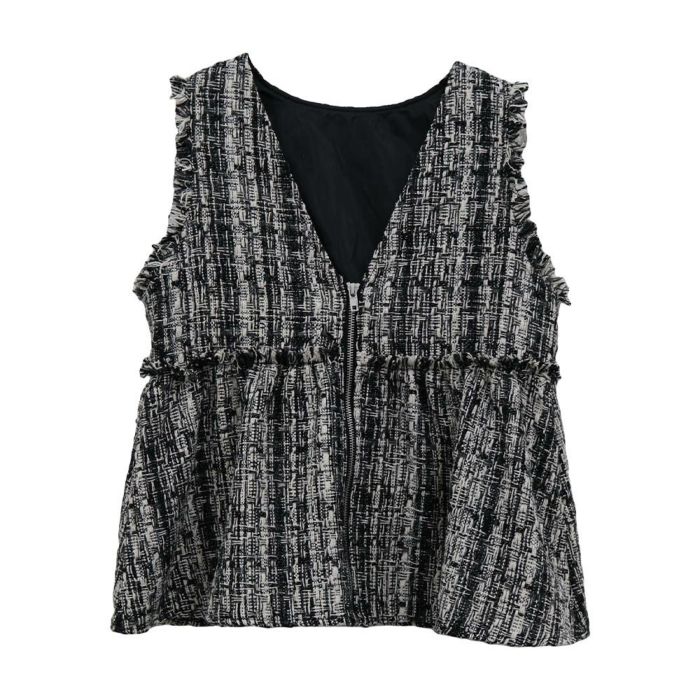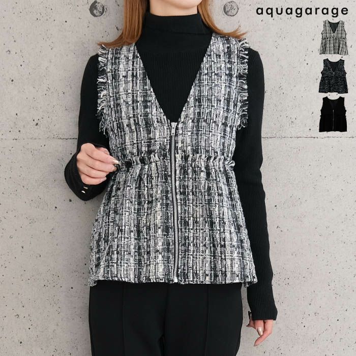 【セットアップ可】ツイードペプラムジップベスト 春 秋 冬 M | アクアガレージ aquagarage