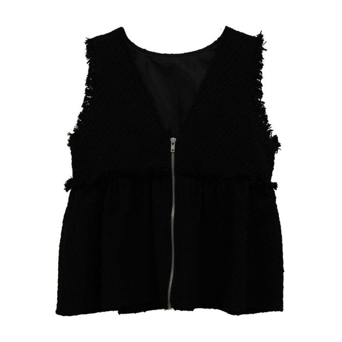 • スパンコールとラメ糸を織り込んだ、表情豊かなツイードペプラムベスト。