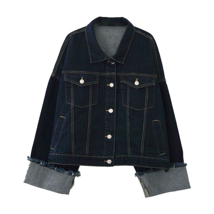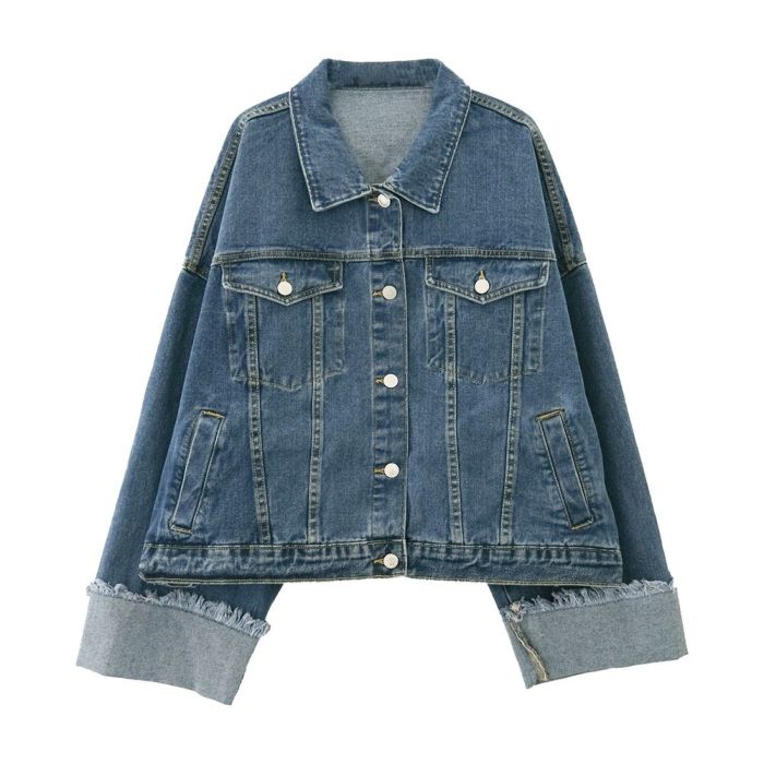 このワイドスリーブデニムジャケットは、さまざまなコーディネートに取り入れやすいアイテムです。