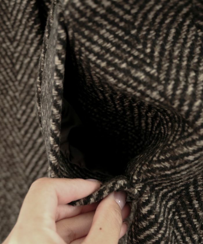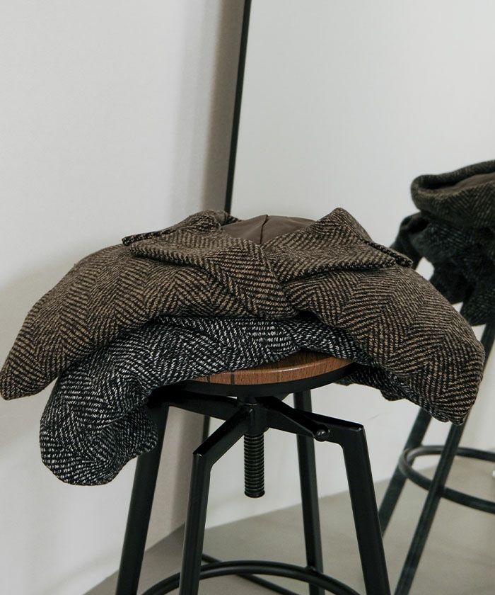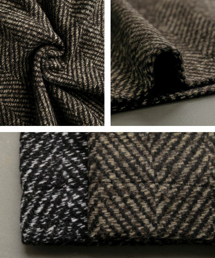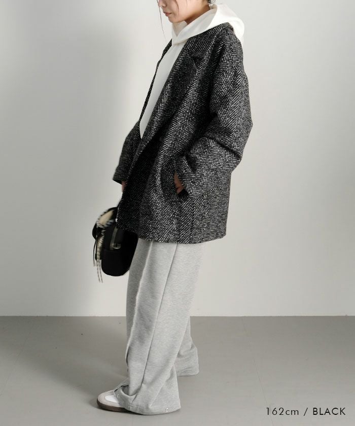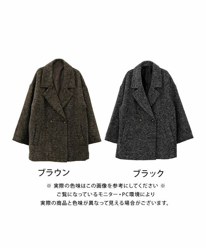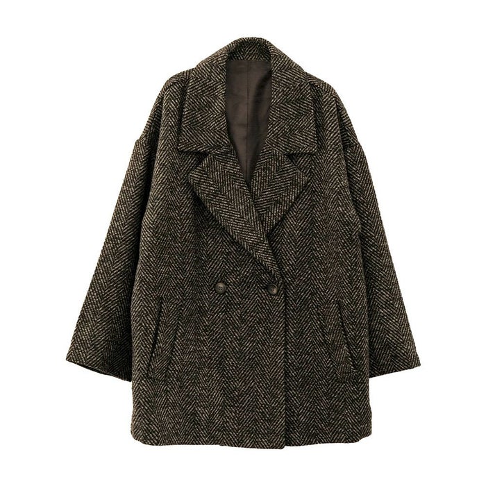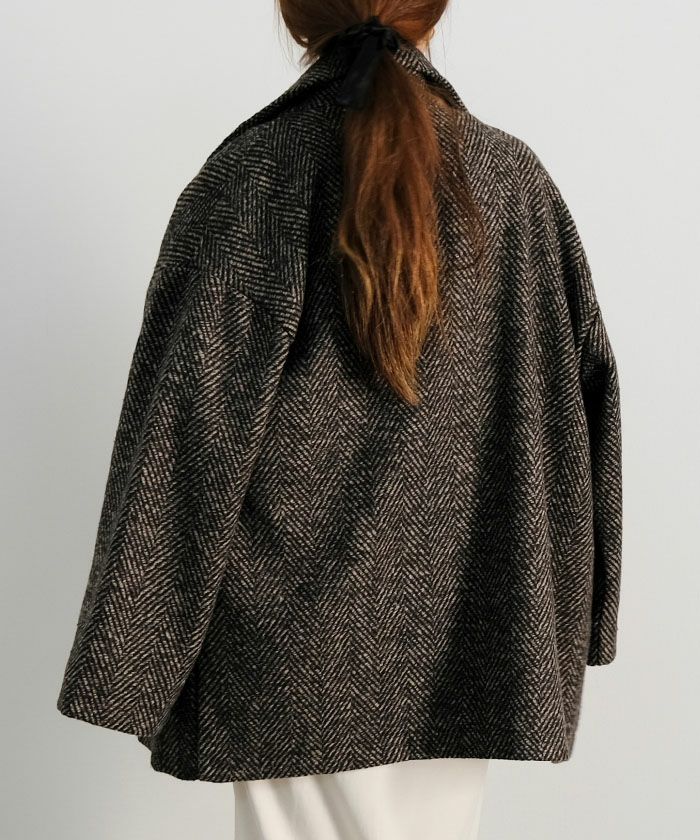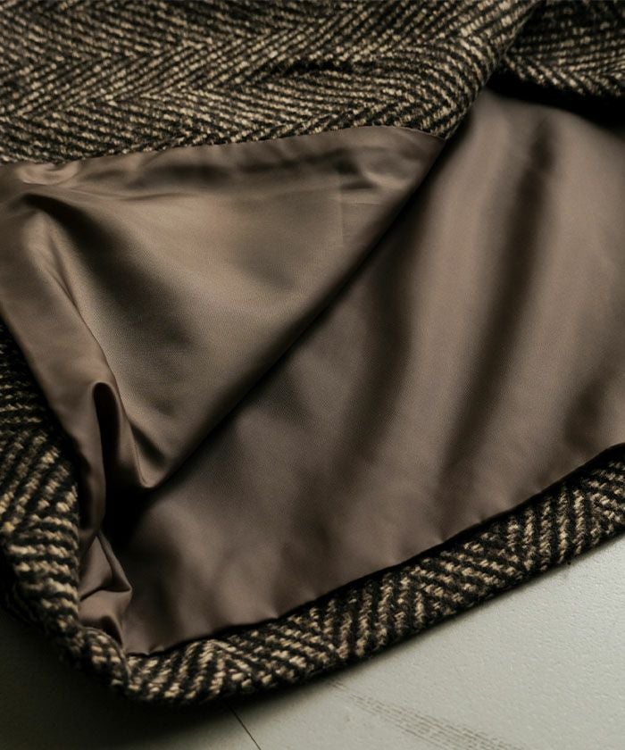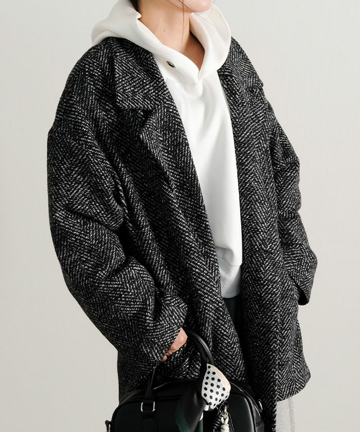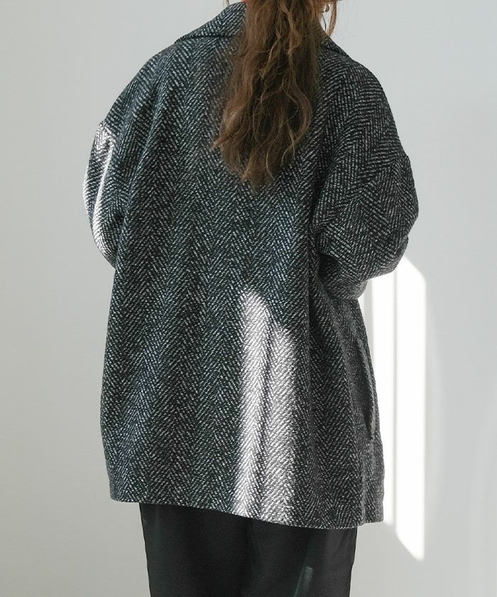 上品なムードを漂わせるヘリンボーン柄のダブルテーラードジャケット。