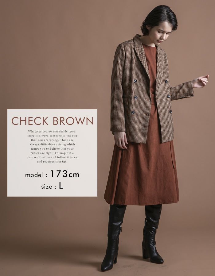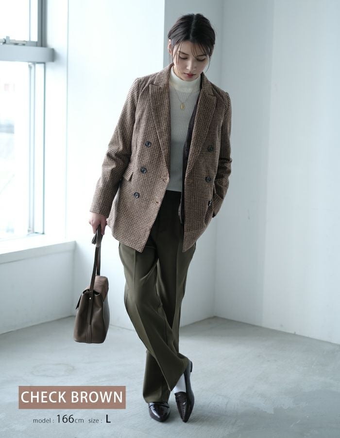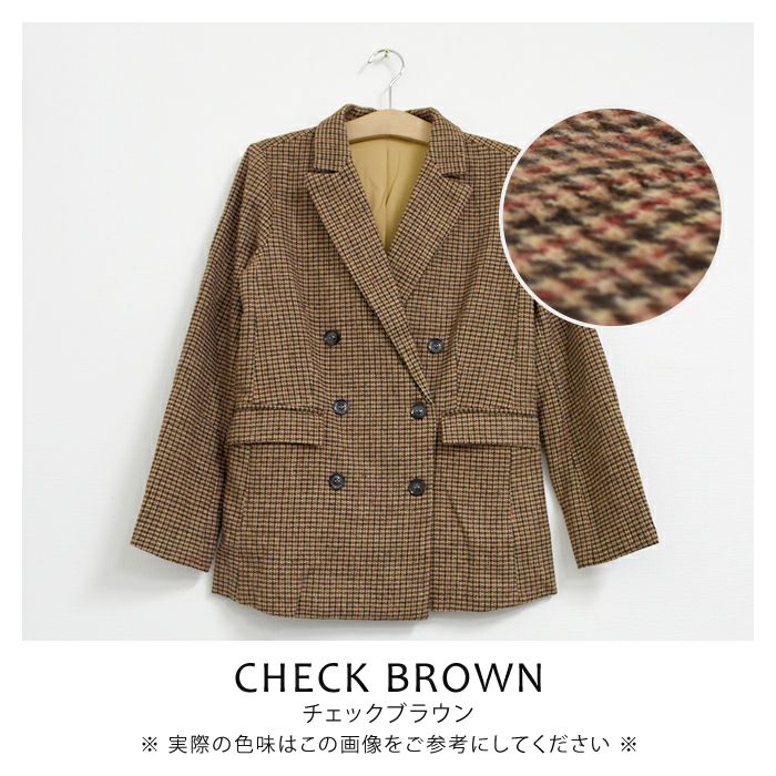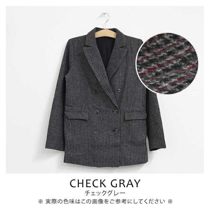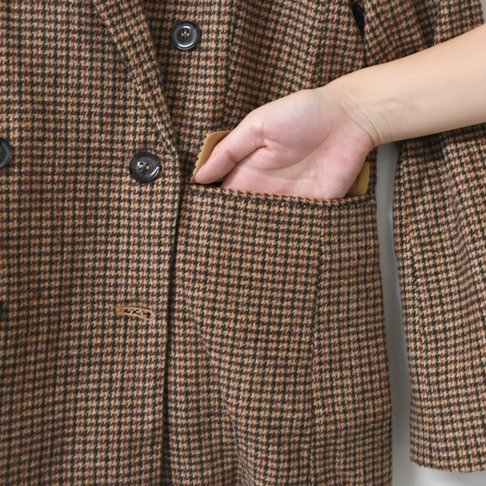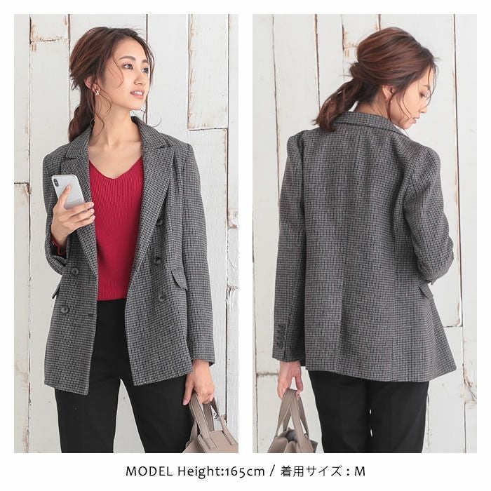 ウール調 ジャケット テーラード トラッド アウター レディース 秋冬 長袖 チェック柄 ダブルボタン ダブル カジュアル ベーシック JKT 羽織り 通勤 オフィス 千鳥柄 コート 英国柄 ブリティッシュチェック コート チェスター ビジネス ガンクラブチェック SNS掲載 19_02wrot■