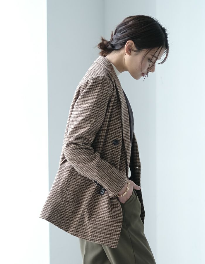 • ONもOFFも女性らしい、ダブルボタンテーラードジャケット。