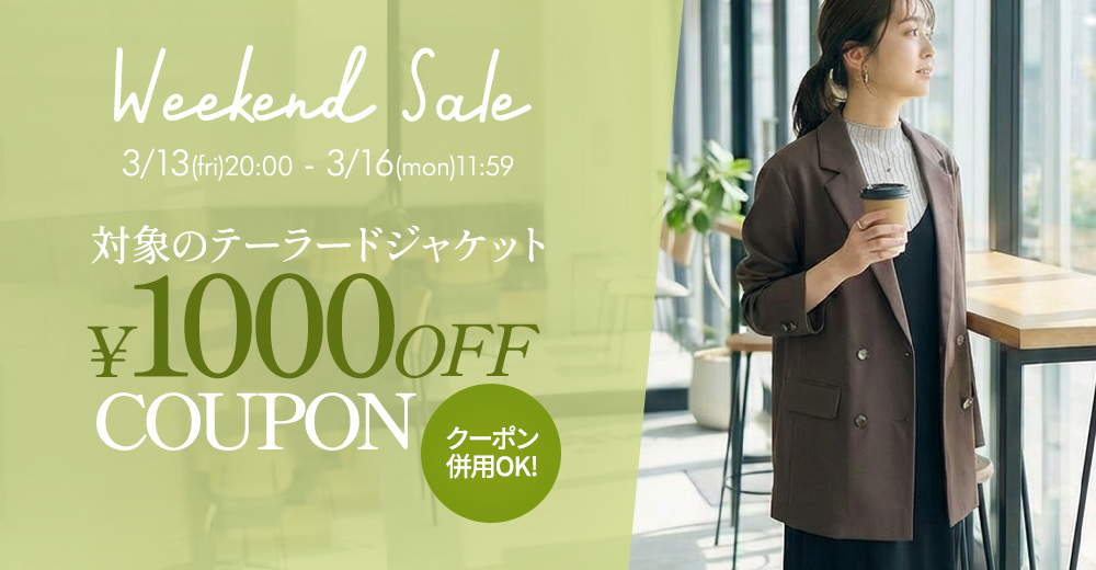 対象のテーラードジャケットが今だけ1000円引き!