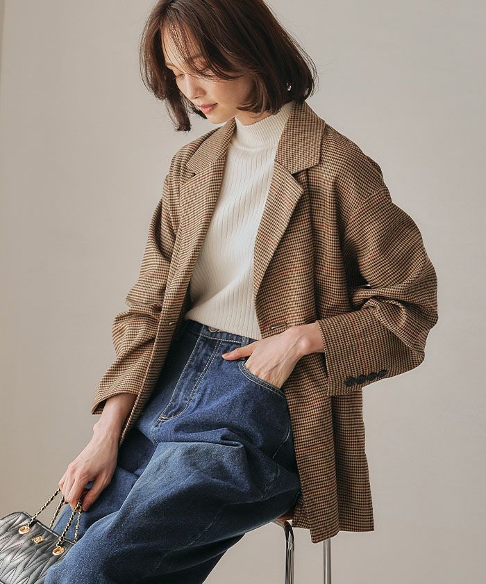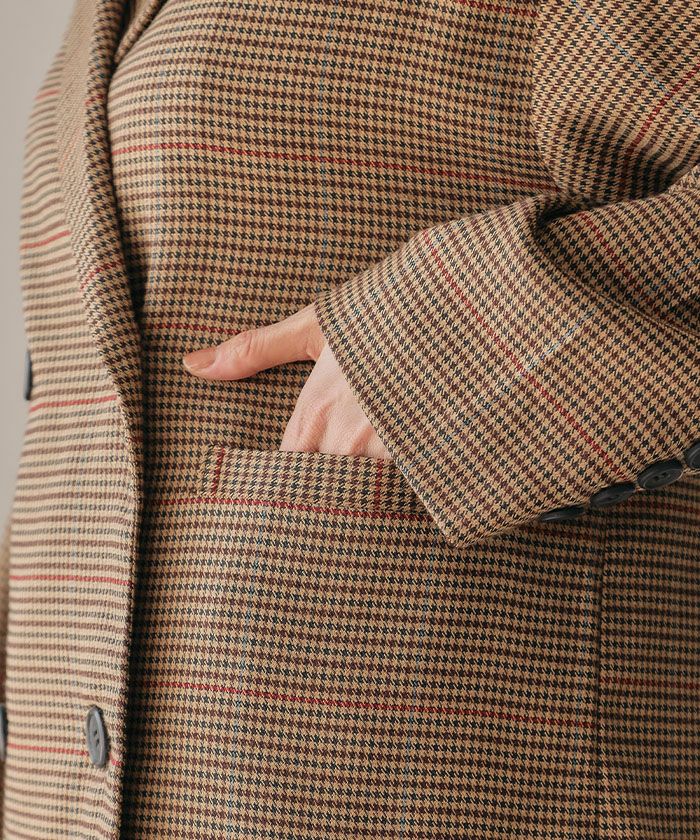 クラシカルな雰囲気漂うガンクラブチェック柄のテーラードジャケット。