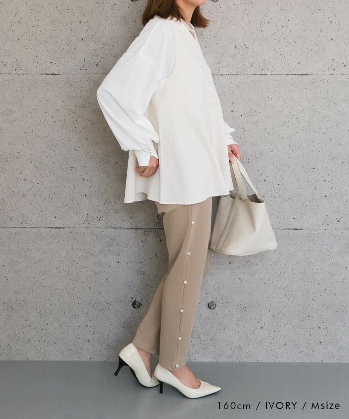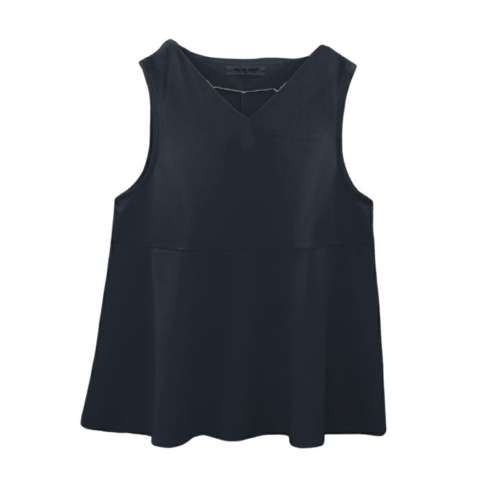 • スリーシーズン使える、ゆるやかな広がりのペプラムベスト