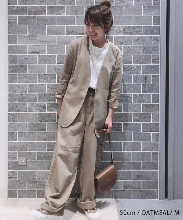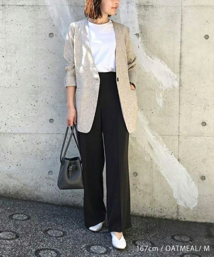 • シンプルなデザインが大人な雰囲気のリネンタッチノーラペルジャケット。