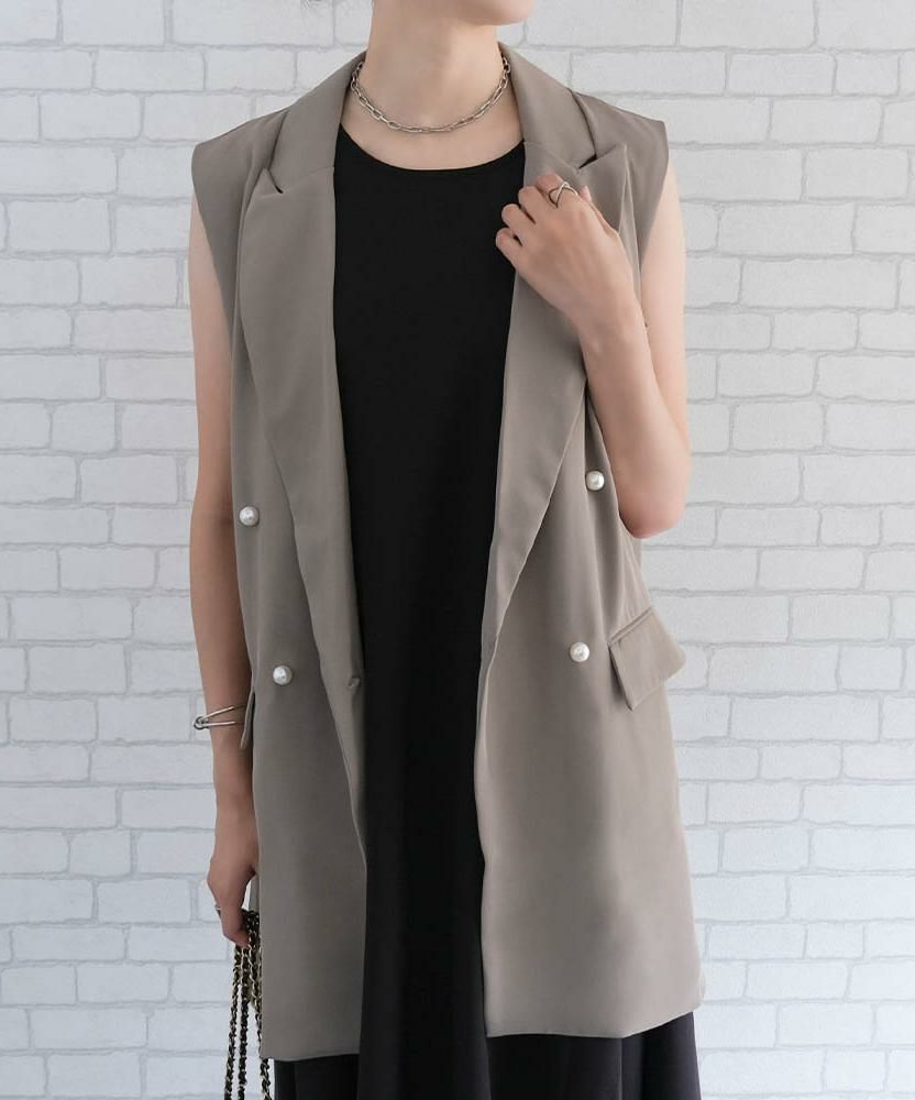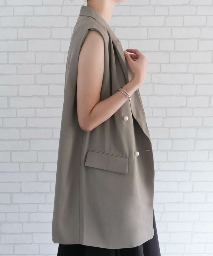 送料無料 リネンライクダブルブレストベスト 春 夏 秋 M L | アクアガレージ aquagarage