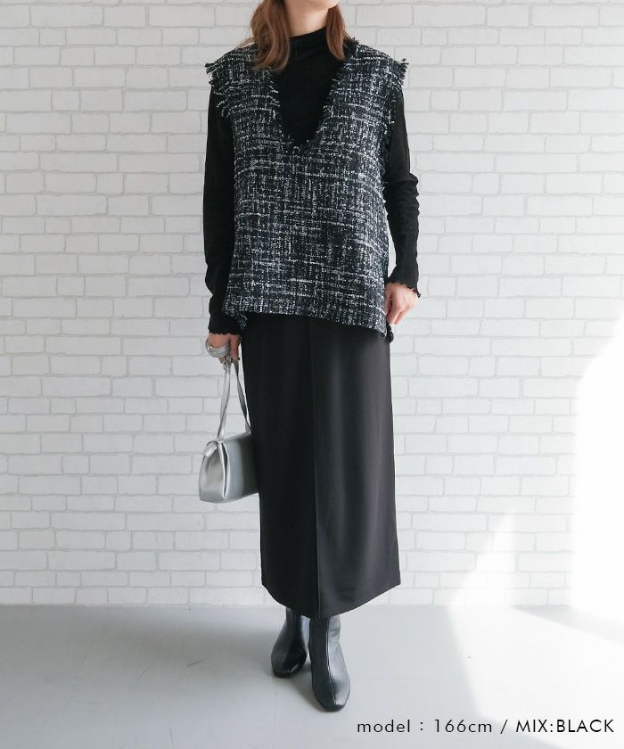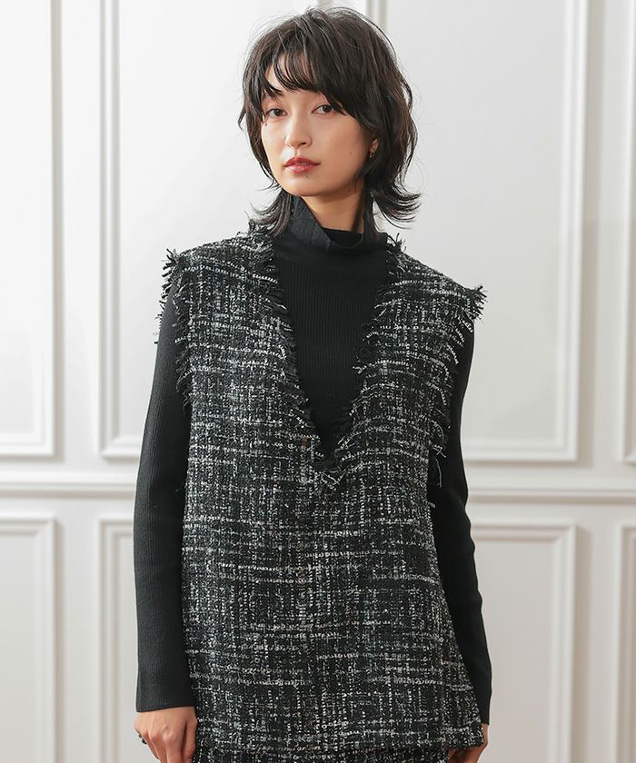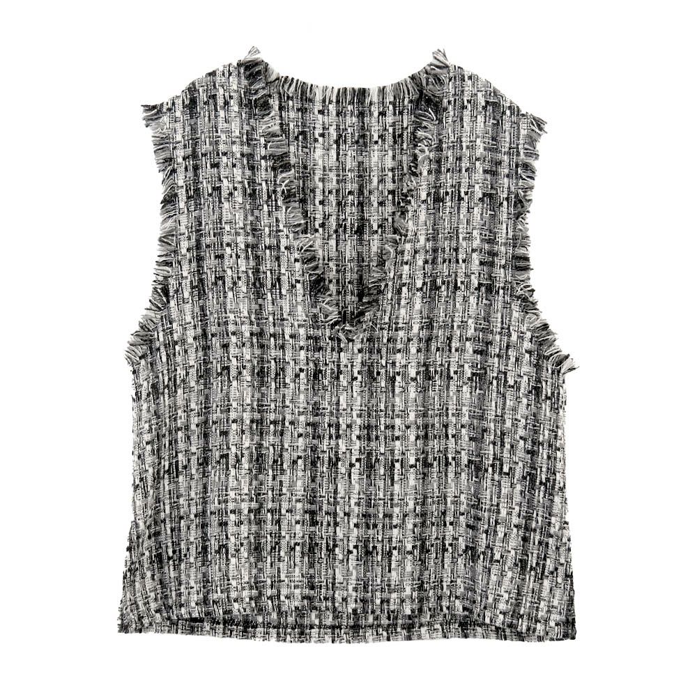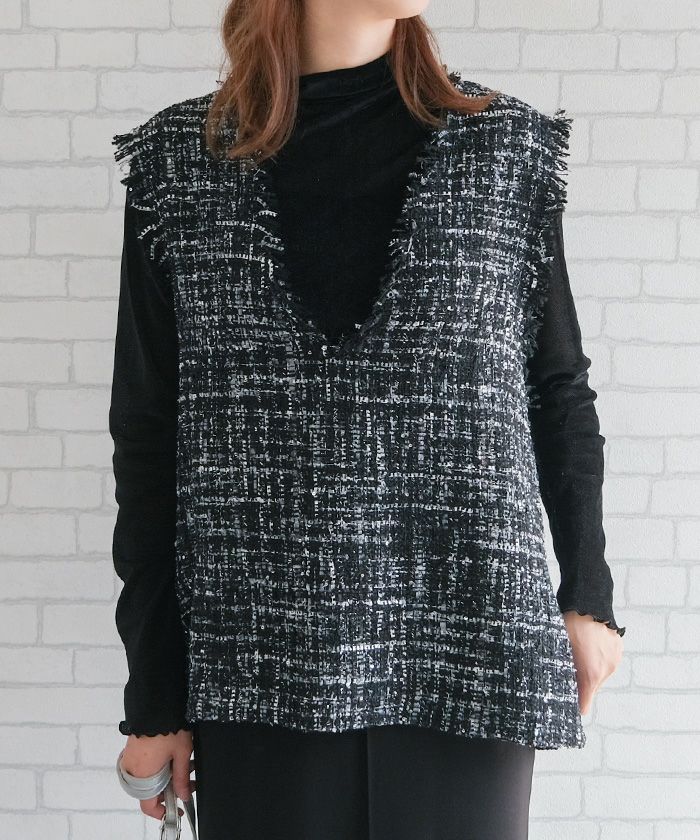 【セットアップ可】ツイードフリンジ深Vネックベスト 春 秋 冬 M | アクアガレージ aquagarage
