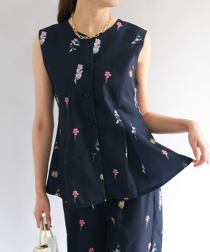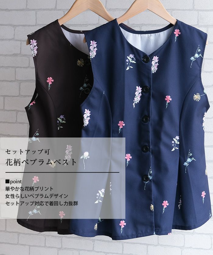 送料無料 【セットアップ可】花柄ペプラムベスト レディース 春 夏 秋 M ≪ゆうメール便配送20・代引不可≫|アクアガレージ aquagarage
