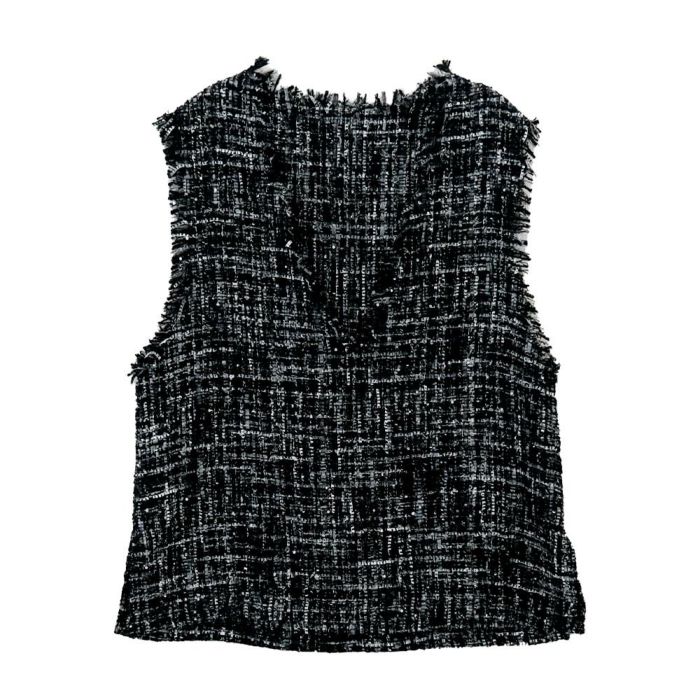 【セットアップ可】ツイードフリンジ深Vネックベスト 春 秋 冬 M | アクアガレージ aquagarage