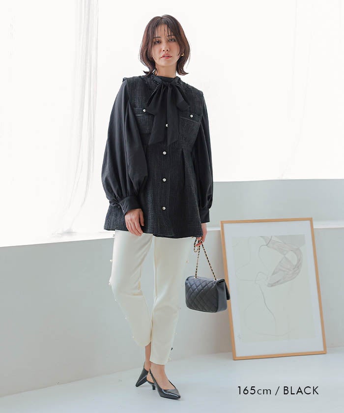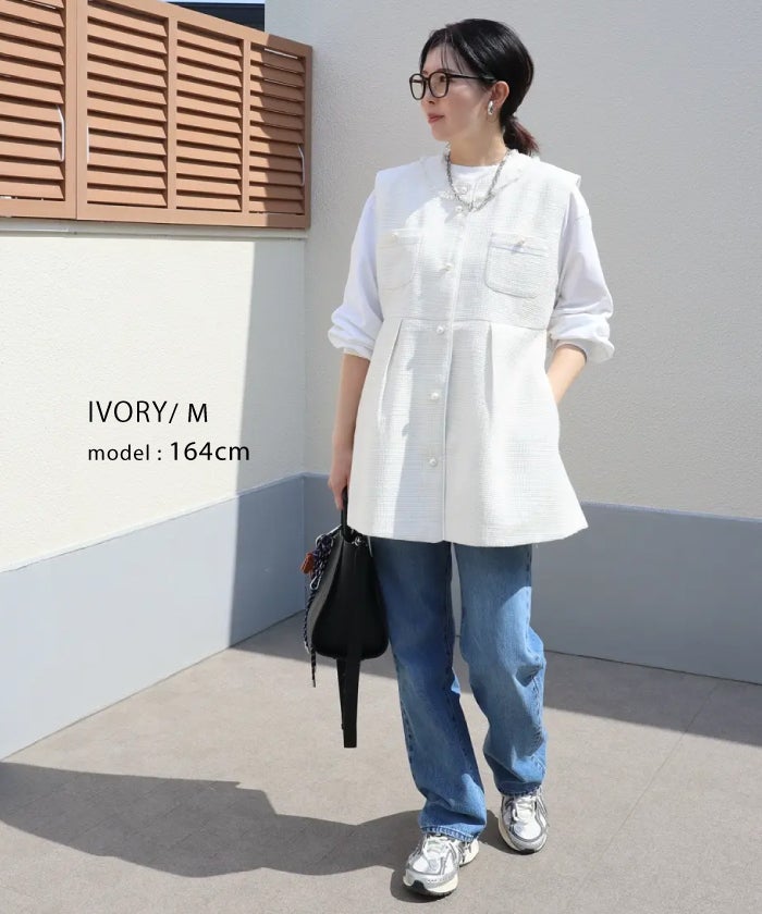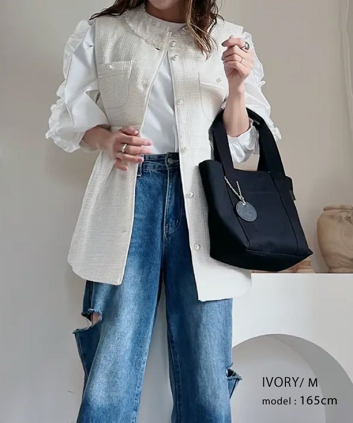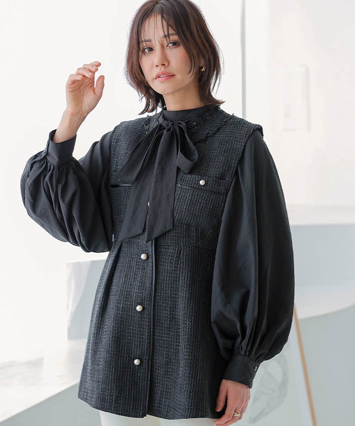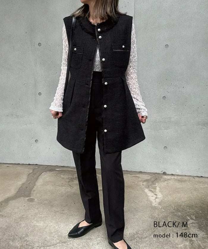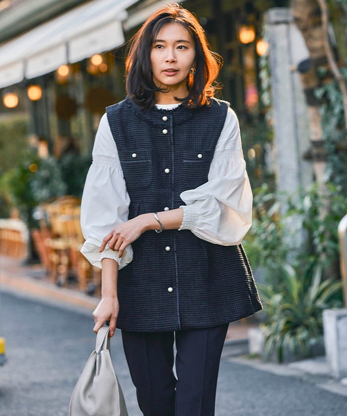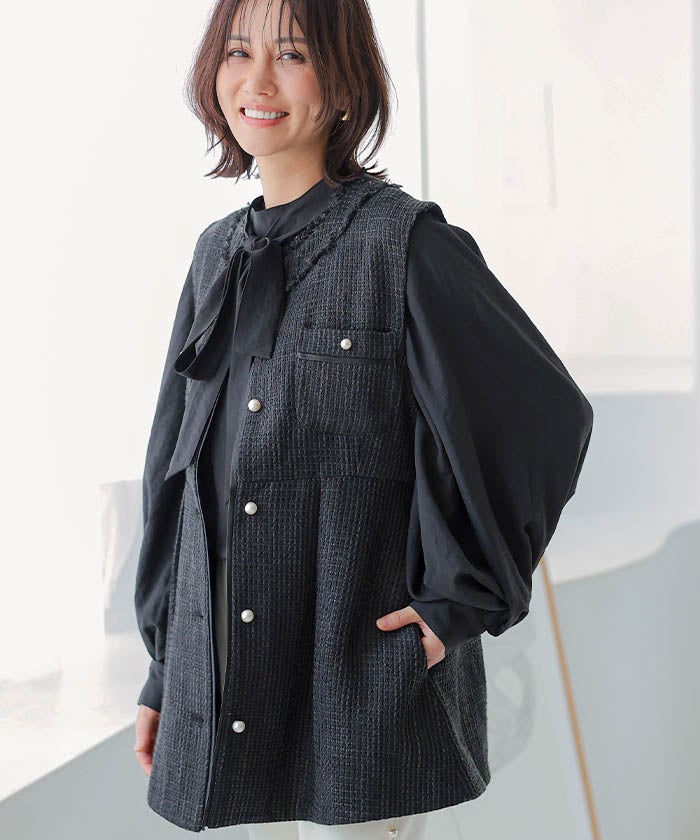 • 上品なツイード素材を使用したツイードジレベスト。