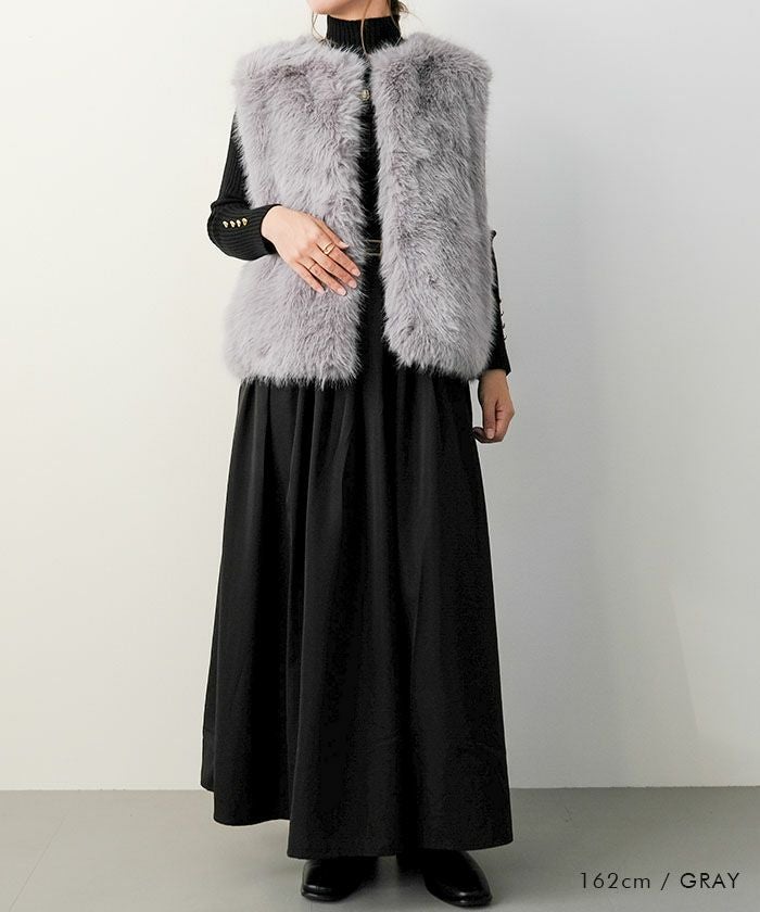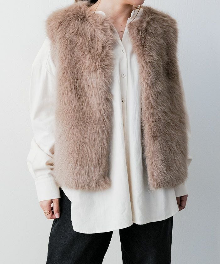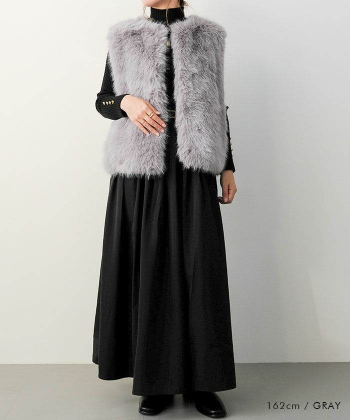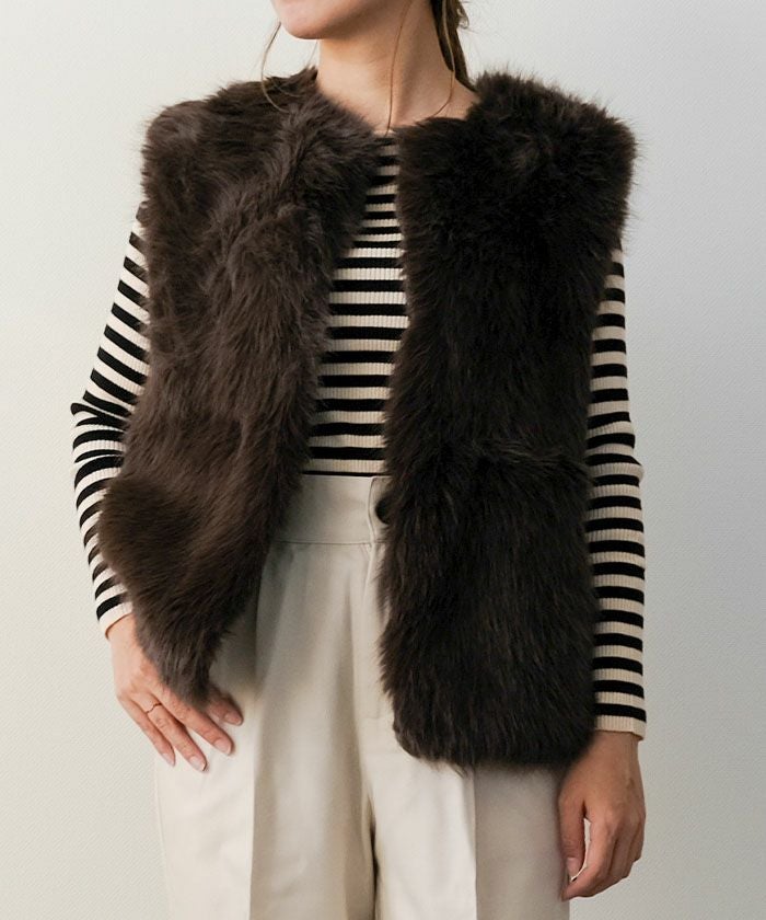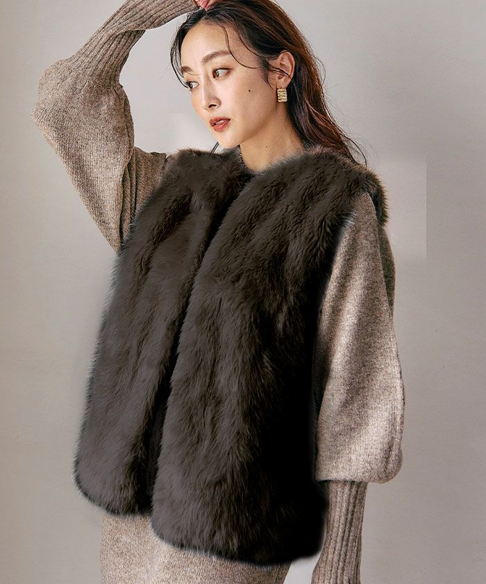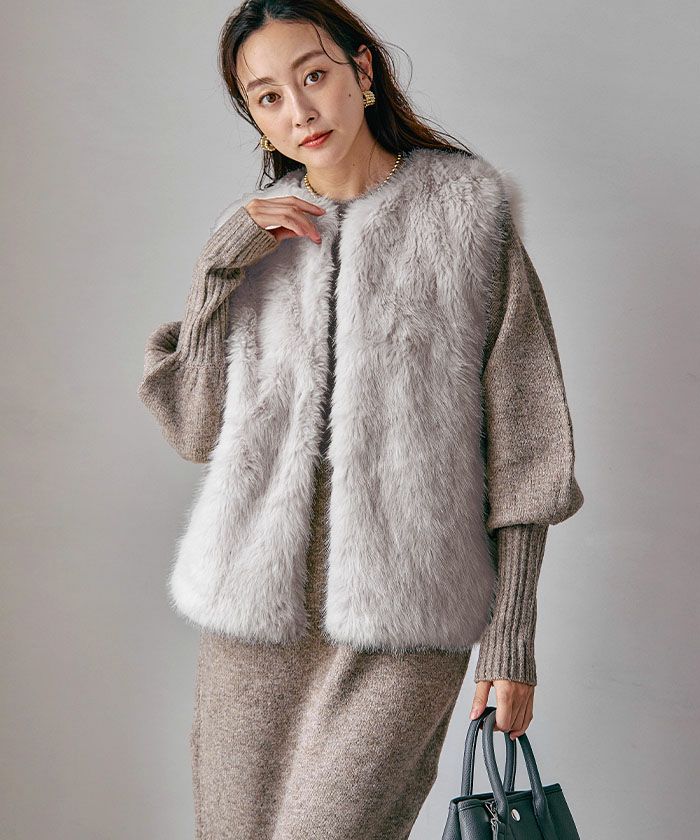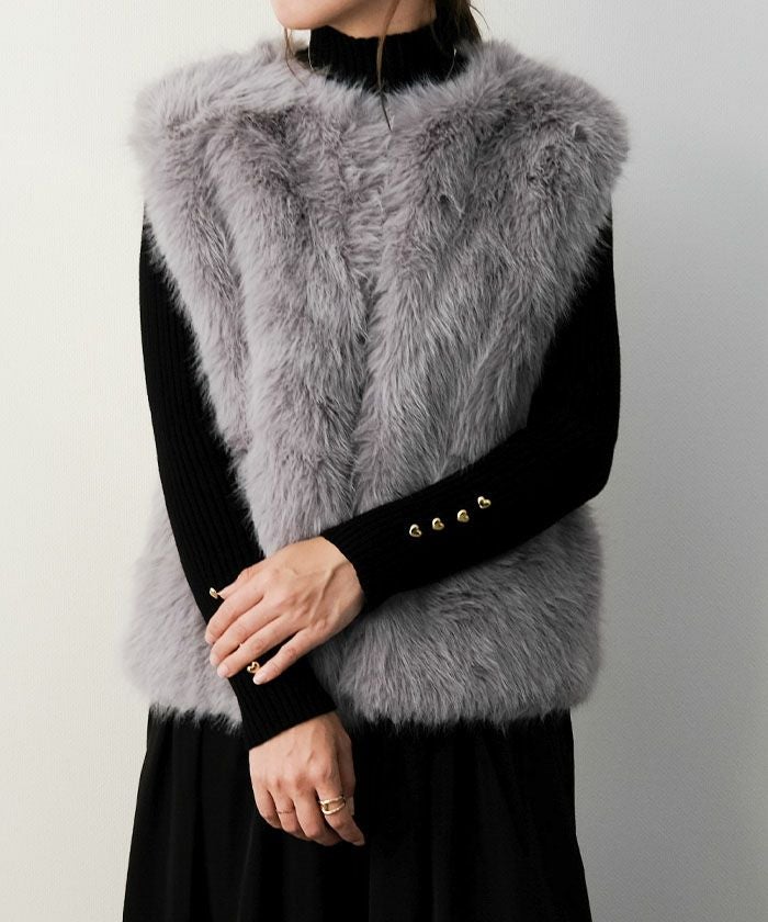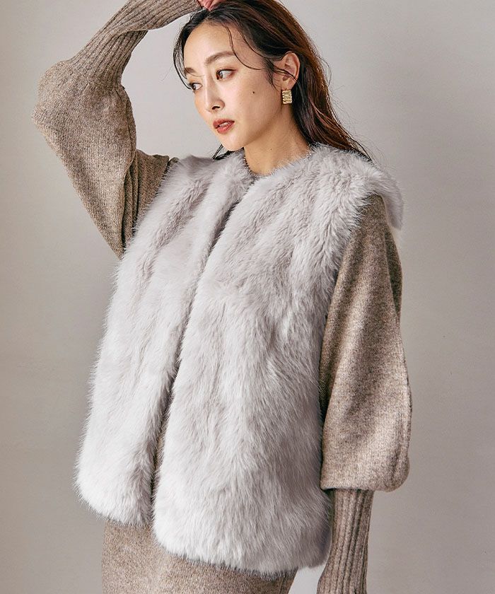 思わず触れたくなるような、ふんわり柔らかなフェイクファーをたっぷりと使用したジレ。