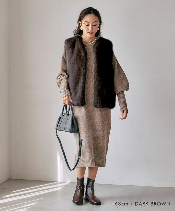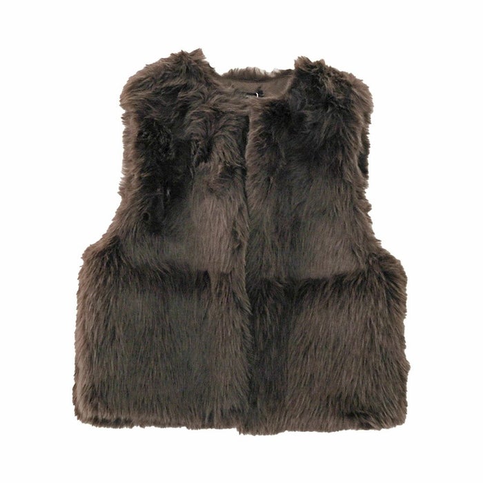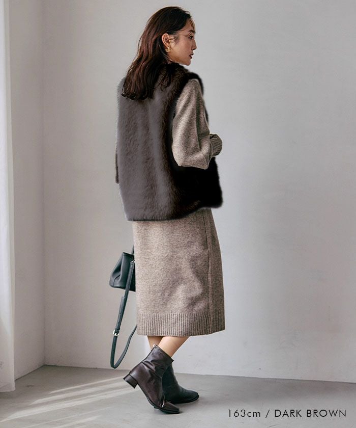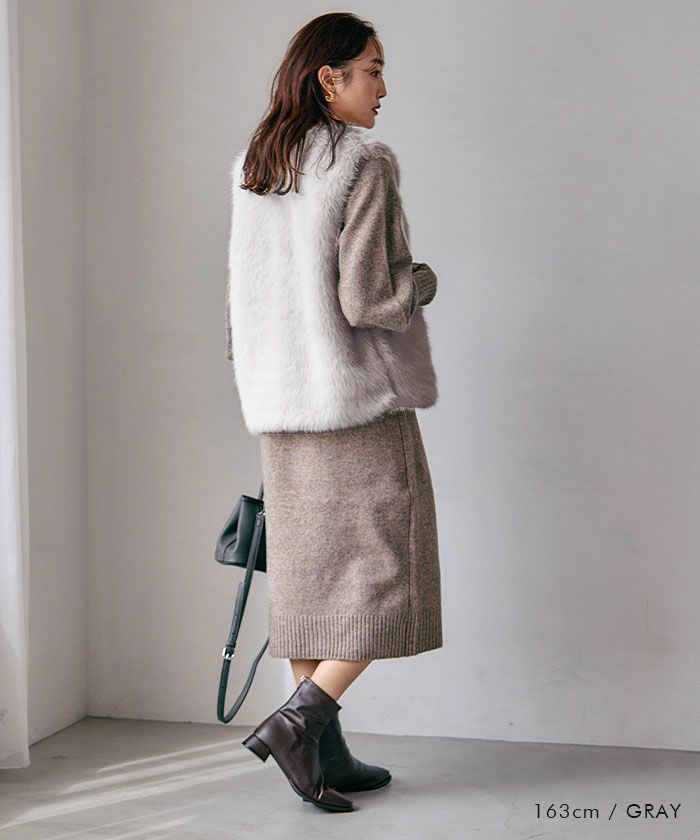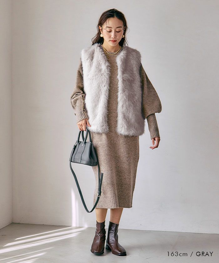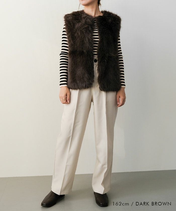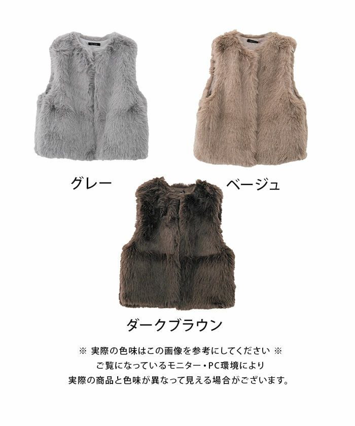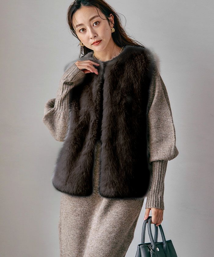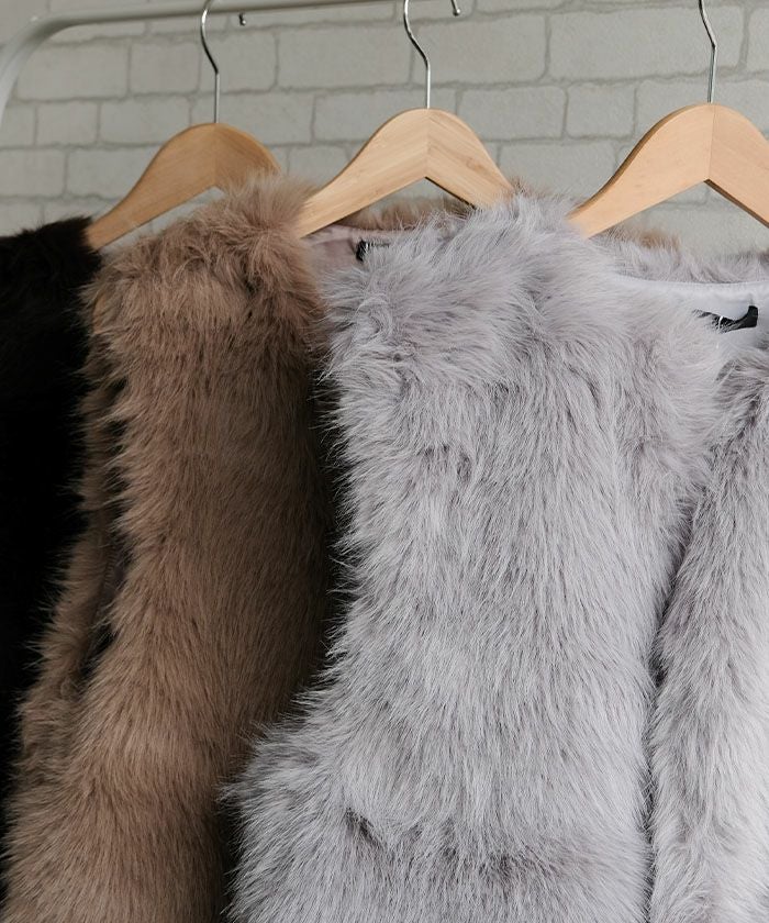 思わず触れたくなるような、ふんわり柔らかなフェイクファーをたっぷりと使用したジレ。