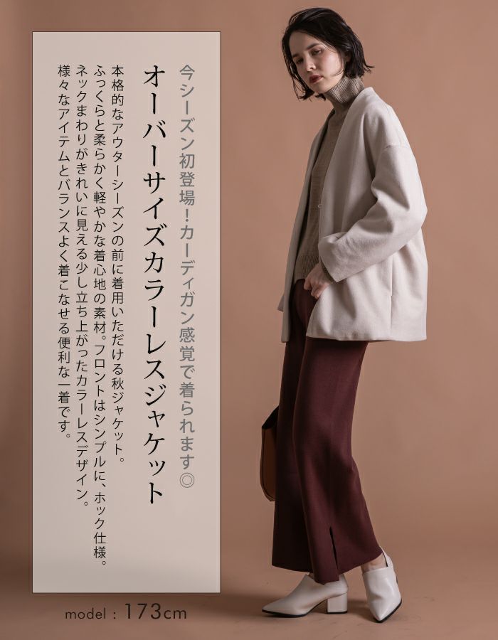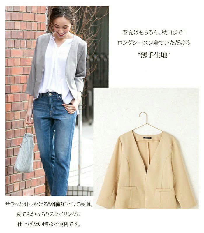 ノーラペルジャケット レディース 長袖 ノーカラージャケット | アクアガレージ aquagarage