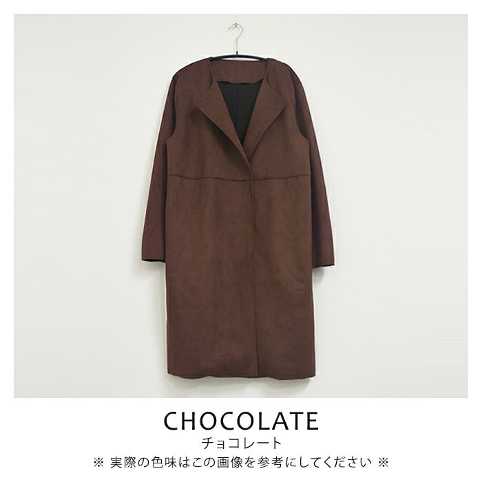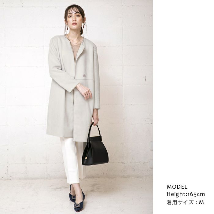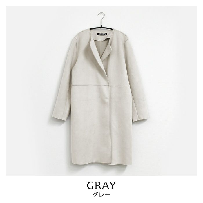 【最終値下げ価格】スエードボンディングノーカラーコート レディース ロング丈 長袖 M L | アクアガレージ aquagarage