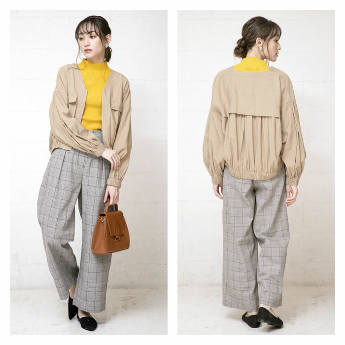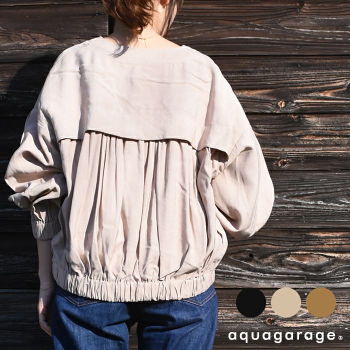 【最終値下げ価格】バックギャザーブルゾン レディース 長袖 ブラック ベージュ ブラウン M L 大きいサイズ アウター | アクアガレージ aquagarage