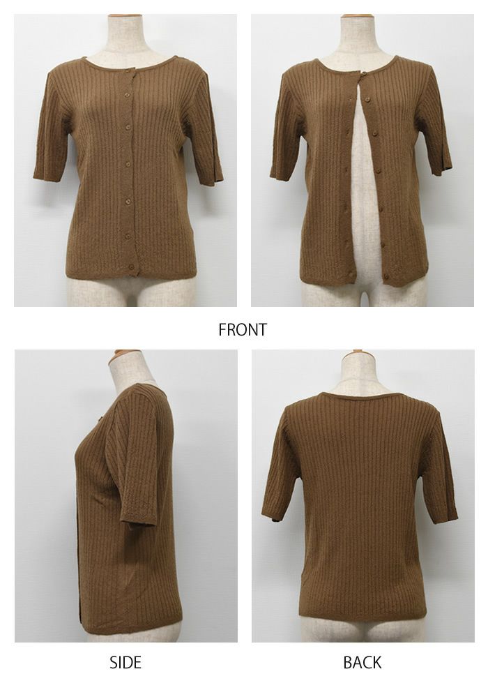 【999円祭り】リブニットカーディガン レディース 春 夏 M L 半袖 五分袖 | アクアガレージ aquagarage