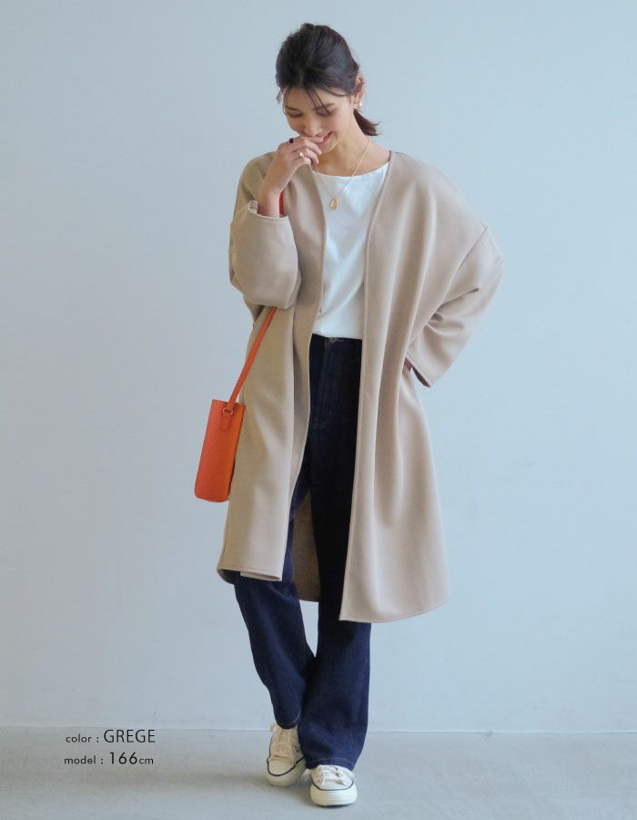 【最終値下げ価格】ノーカラーコート レディース 秋 冬 ダブルフェイス 大きいサイズ | アクアガレージ aquagarage