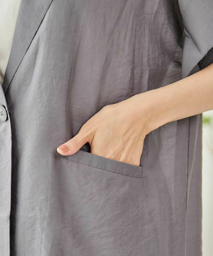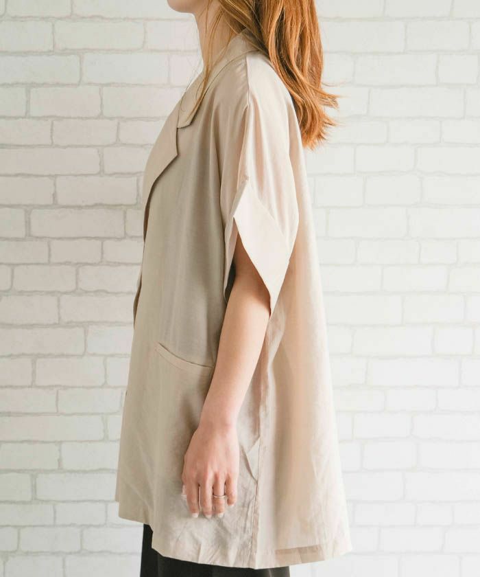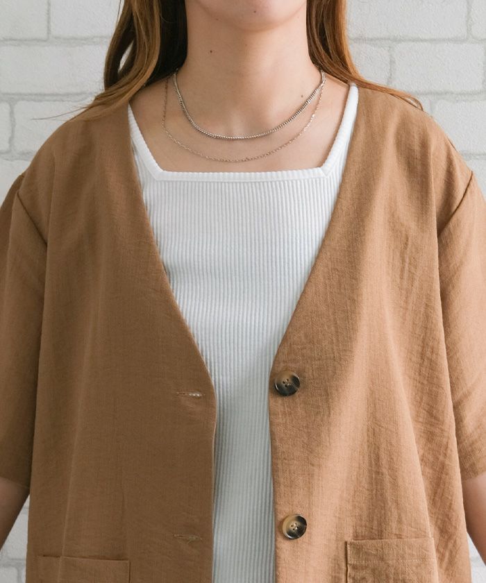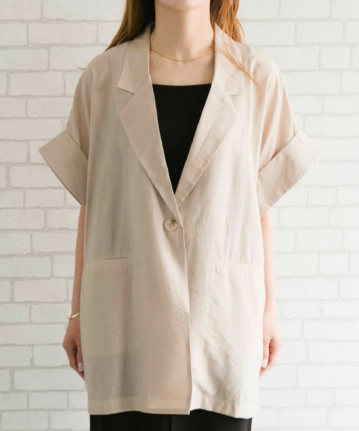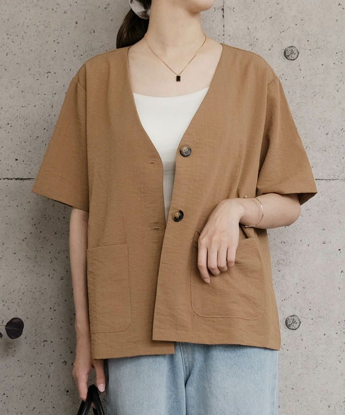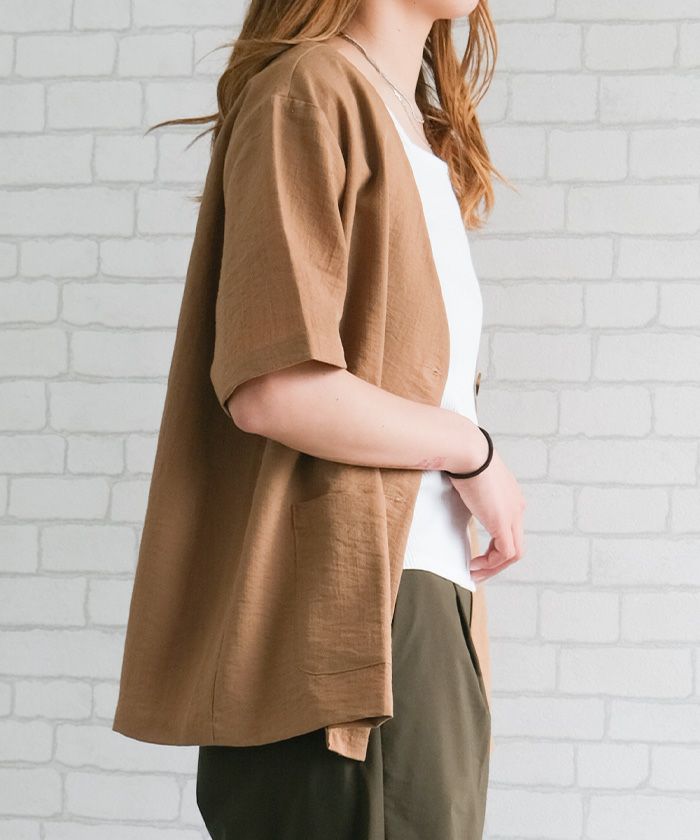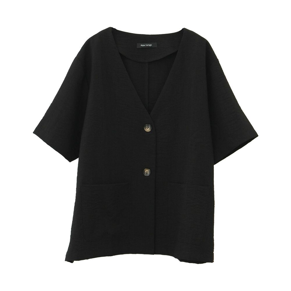 送料無料 ノーカラー半袖ジャケット 春 夏 秋 M | ≪ゆうメール便配送20・代引不可≫アクアガレージ aquagarage