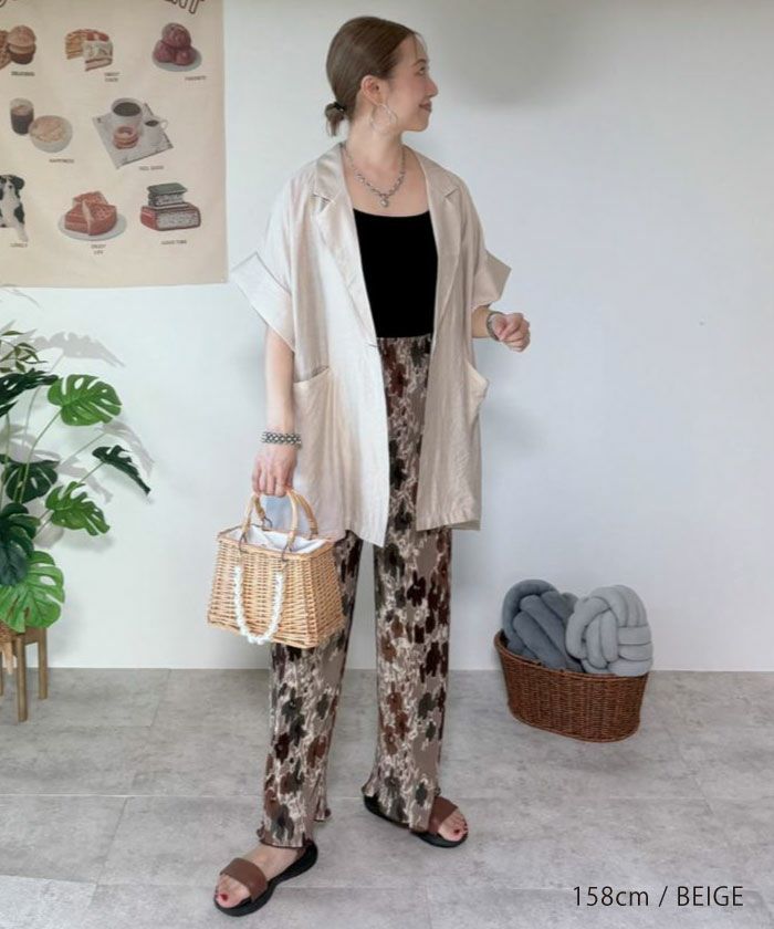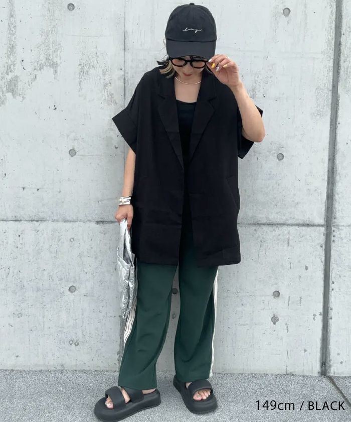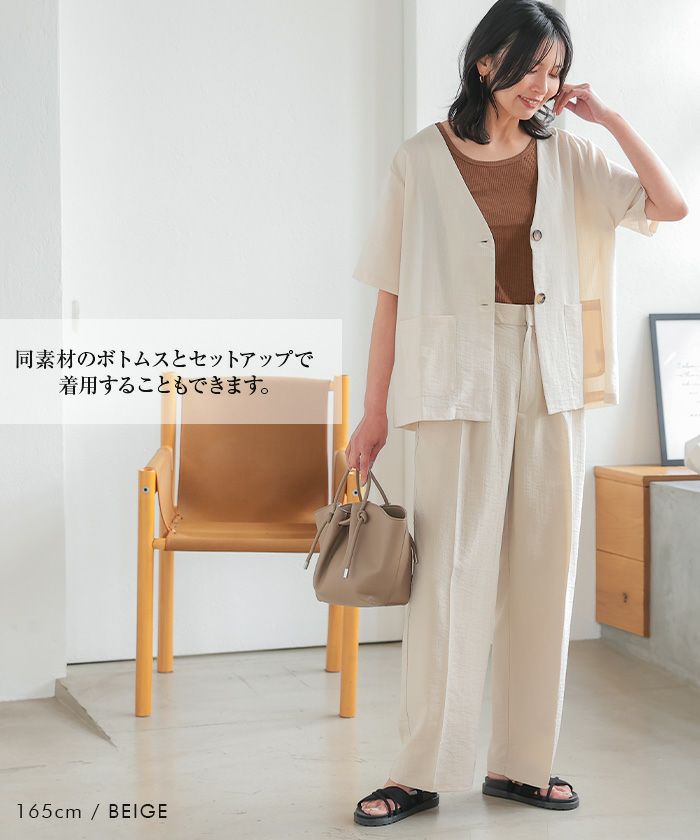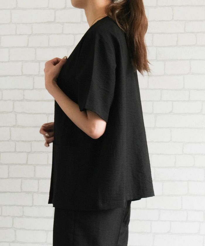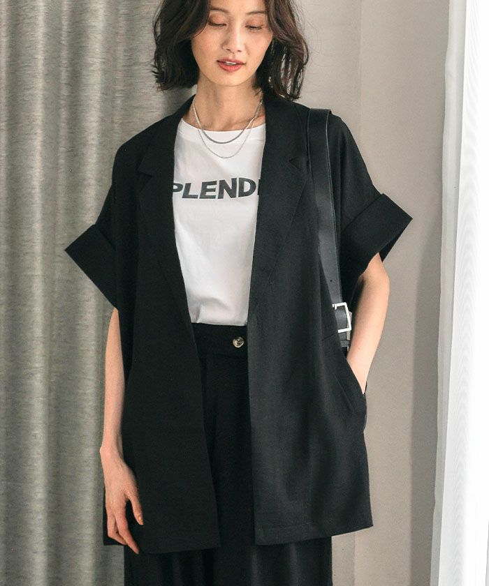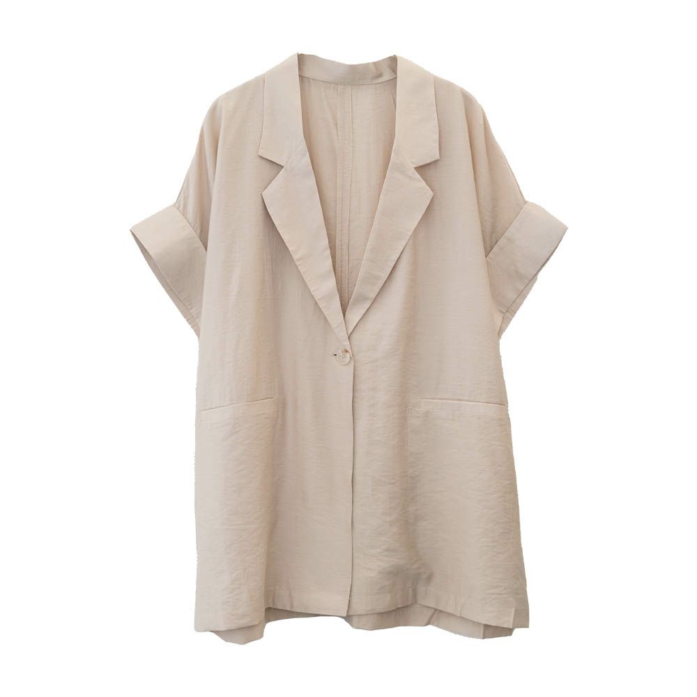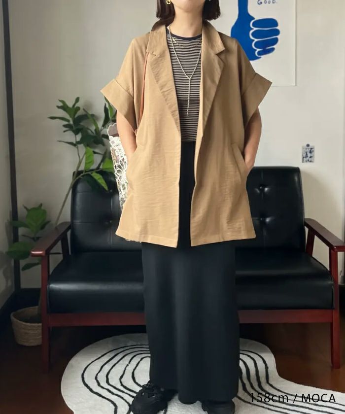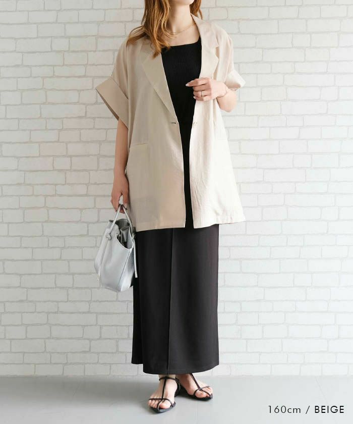 送料無料 ノーカラー半袖ジャケット 春 夏 秋 M | ≪ゆうメール便配送20・代引不可≫アクアガレージ aquagarage