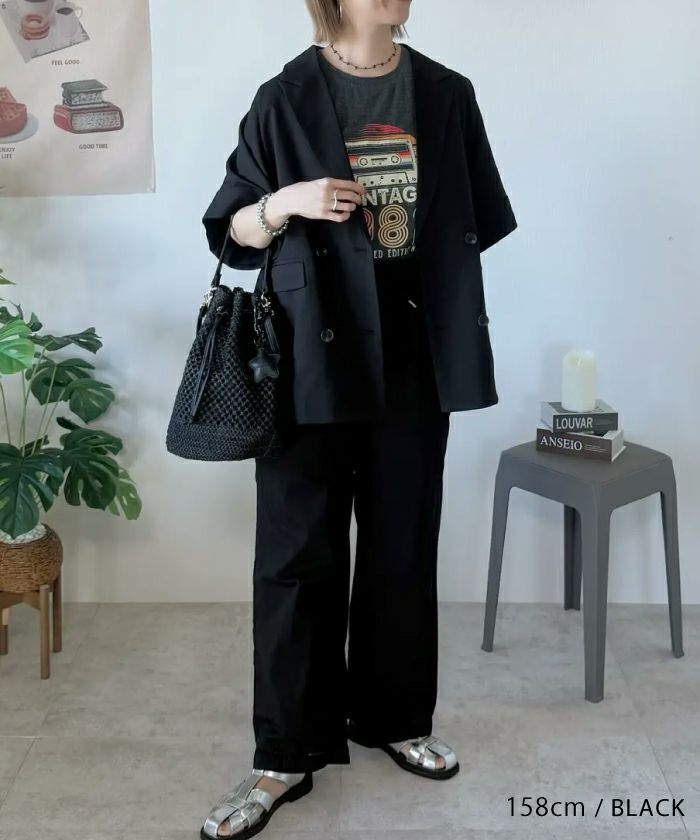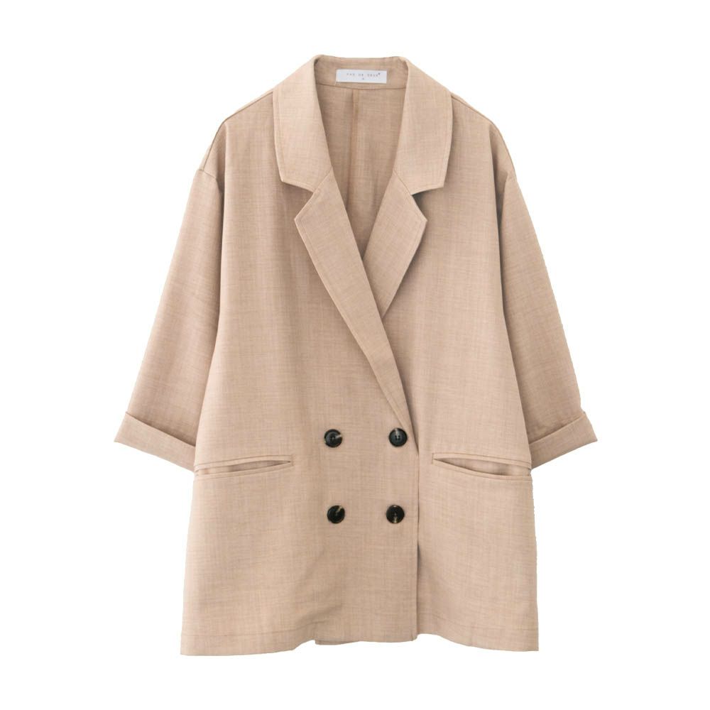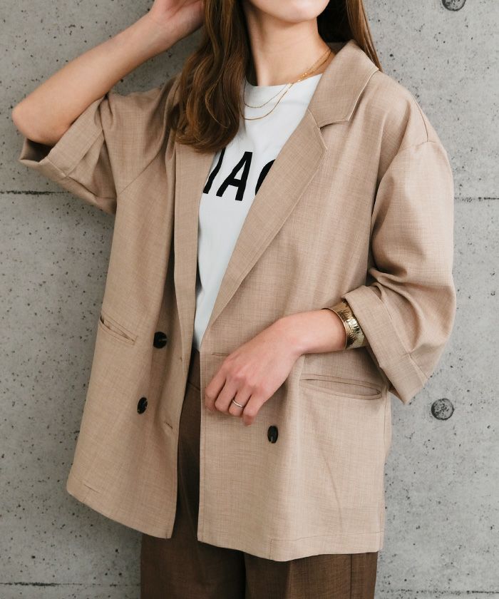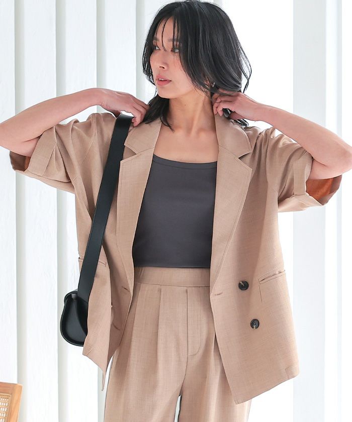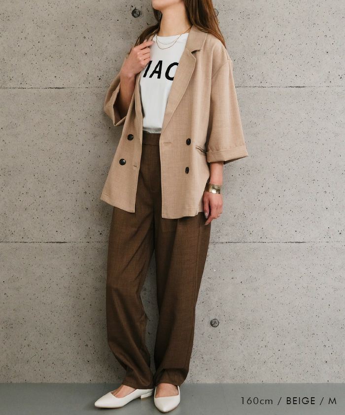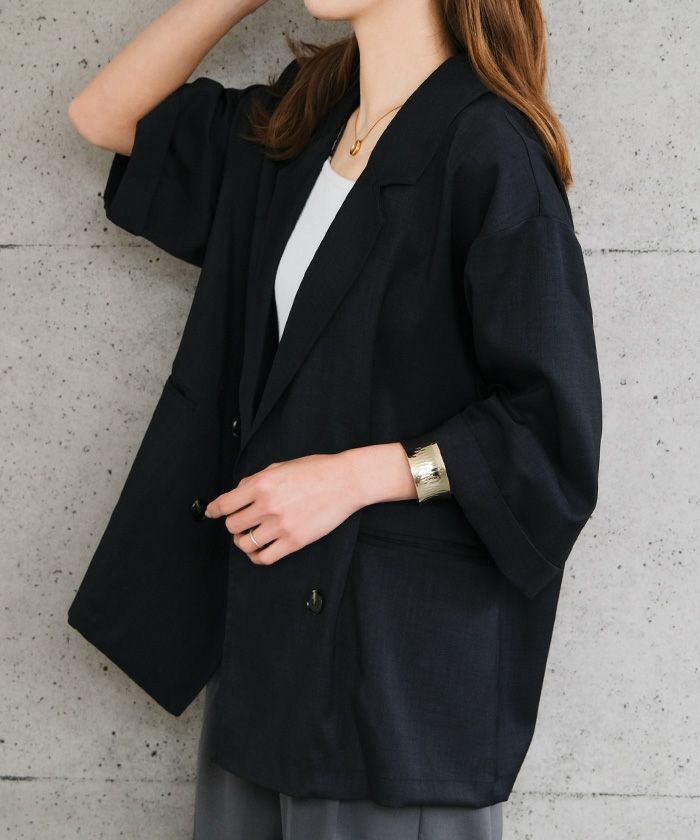 送料無料 リネンライクダブルブレスト半袖テーラードジャケット 春 夏 秋 M |アクアガレージ aquagarage