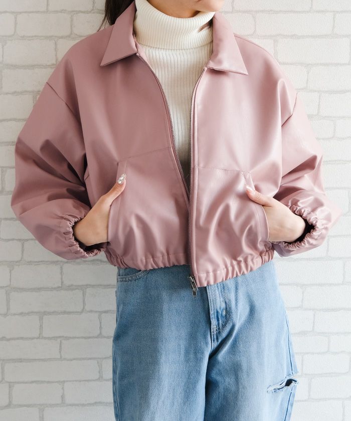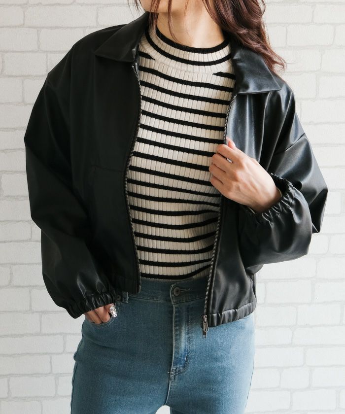 【最終値下げ価格】ショート丈フェイクレザージャケット レディース 春 秋 冬 | アクアガレージ aquagarage