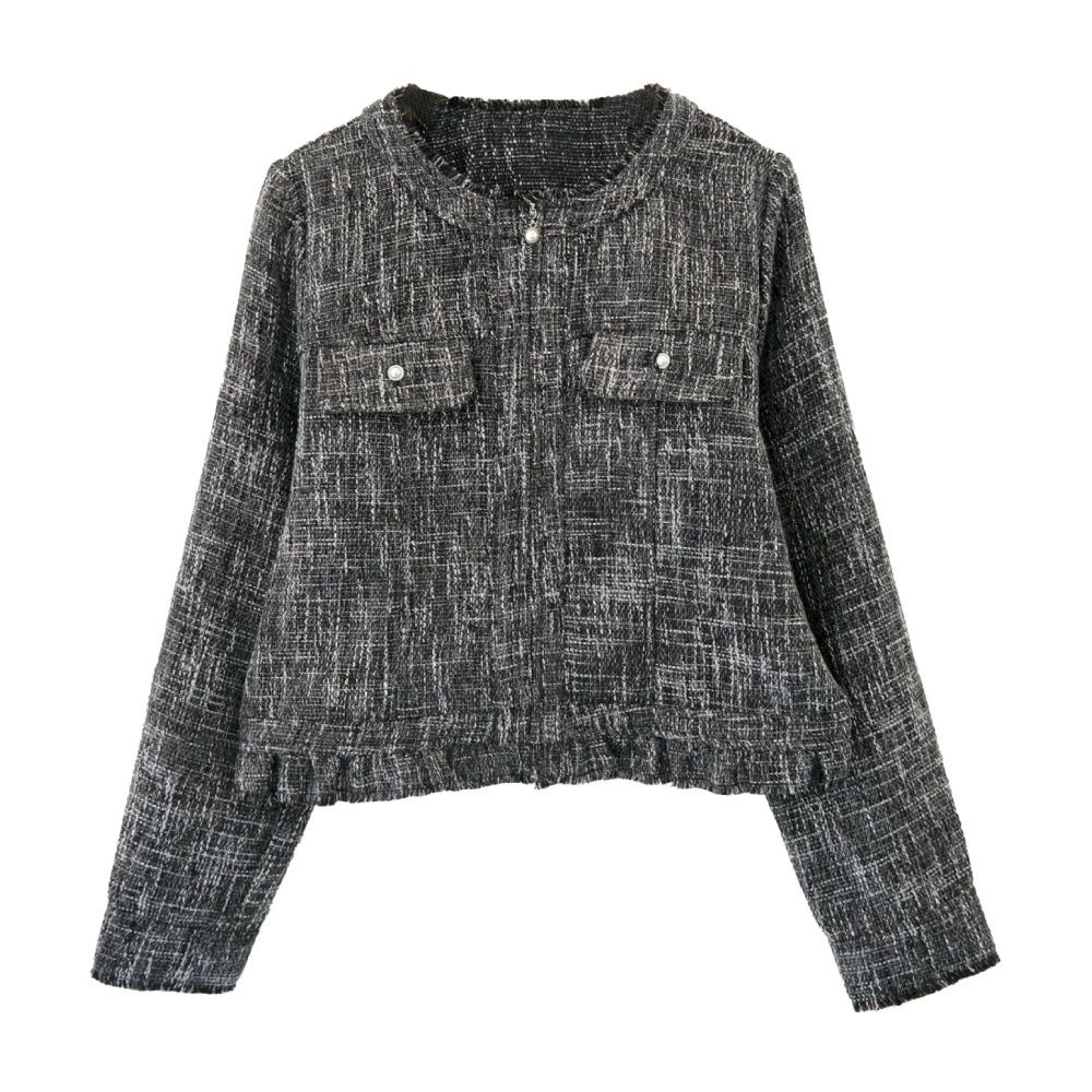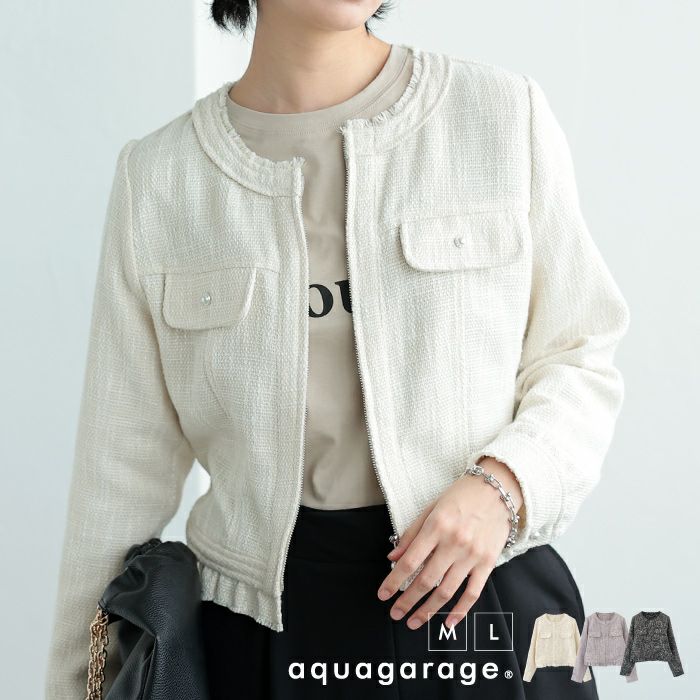 送料無料 サマーツイードノーカラーフリルジャケット 春 秋 冬 M | アクアガレージ aquagarage