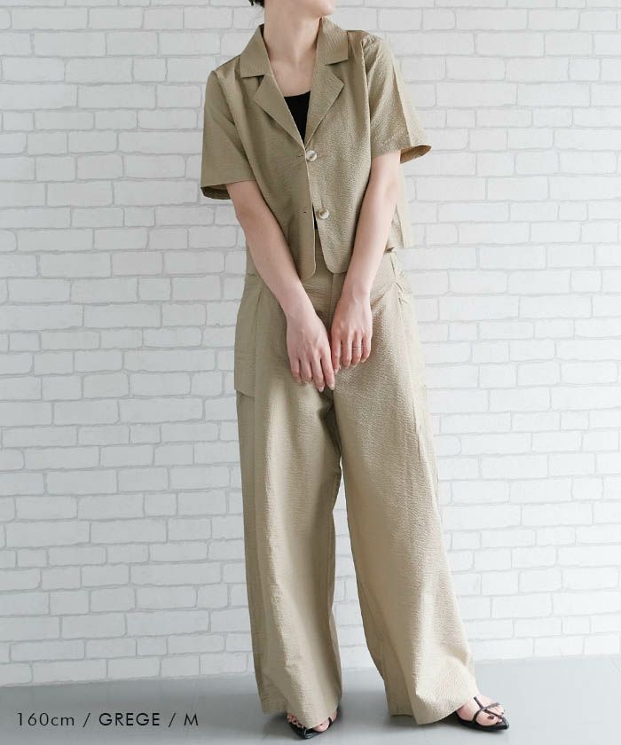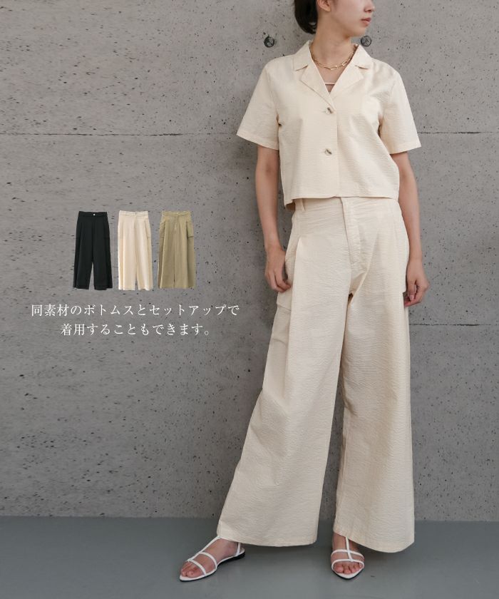 送料無料 サッカー生地ショート丈シャツジャケット 春 夏 秋 M L レディース ≪ゆうメール便配送20・代引不可≫ | | アクアガレージ aquagarage