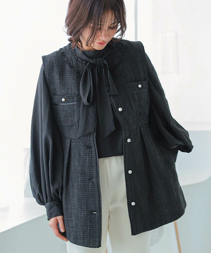 【最終値下げ価格】ツイードフリンジベスト 春 秋 M | アクアガレージ aquagarage