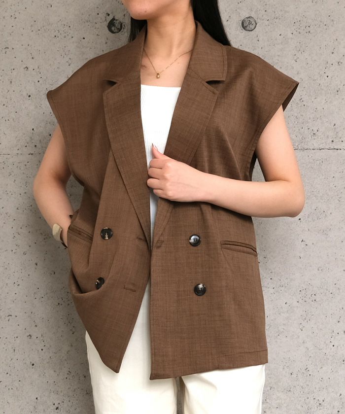 送料無料 リネンライクダブルブレストベスト 春 夏 秋 M L | アクアガレージ aquagarage