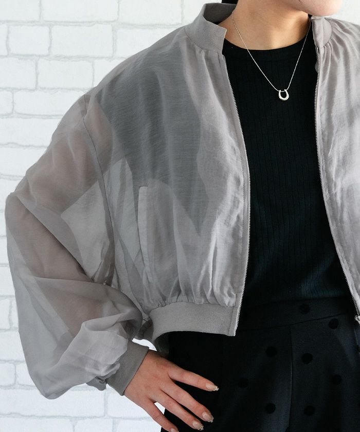 送料無料 シアーギャザーショート丈ブルゾン レディース 春 夏 秋 M | ≪ゆうメール便配送30・代引不可≫アクアガレージ aquagarage