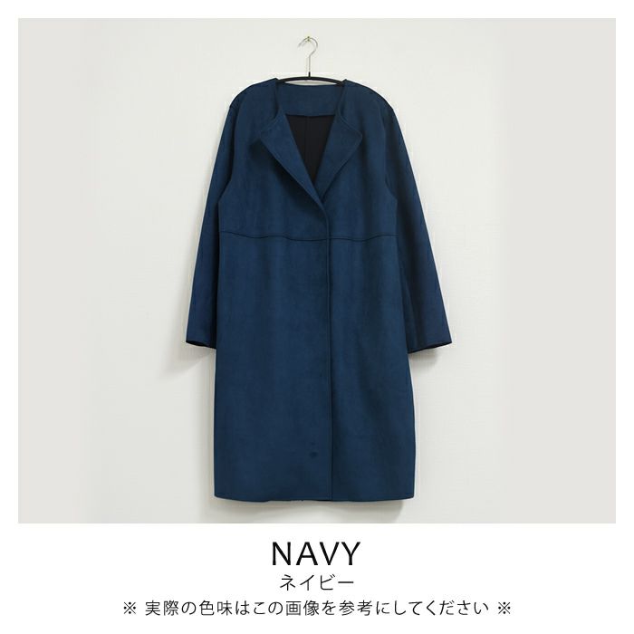 【最終値下げ価格】スエードボンディングノーカラーコート レディース ロング丈 長袖 M L | アクアガレージ aquagarage