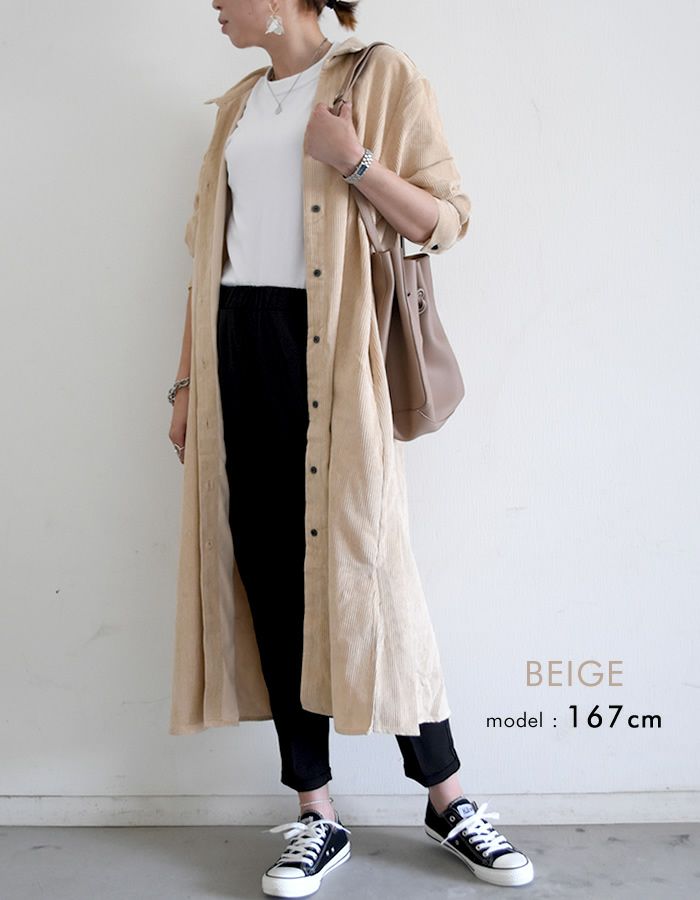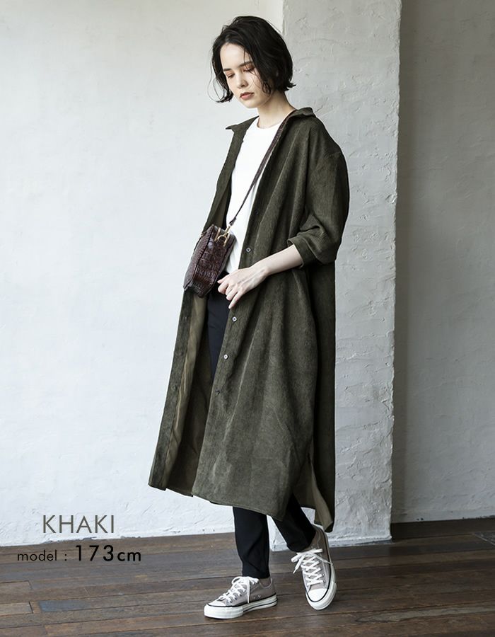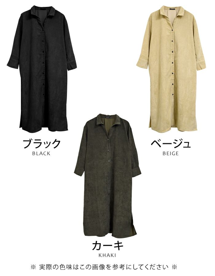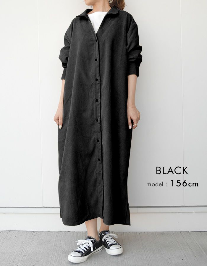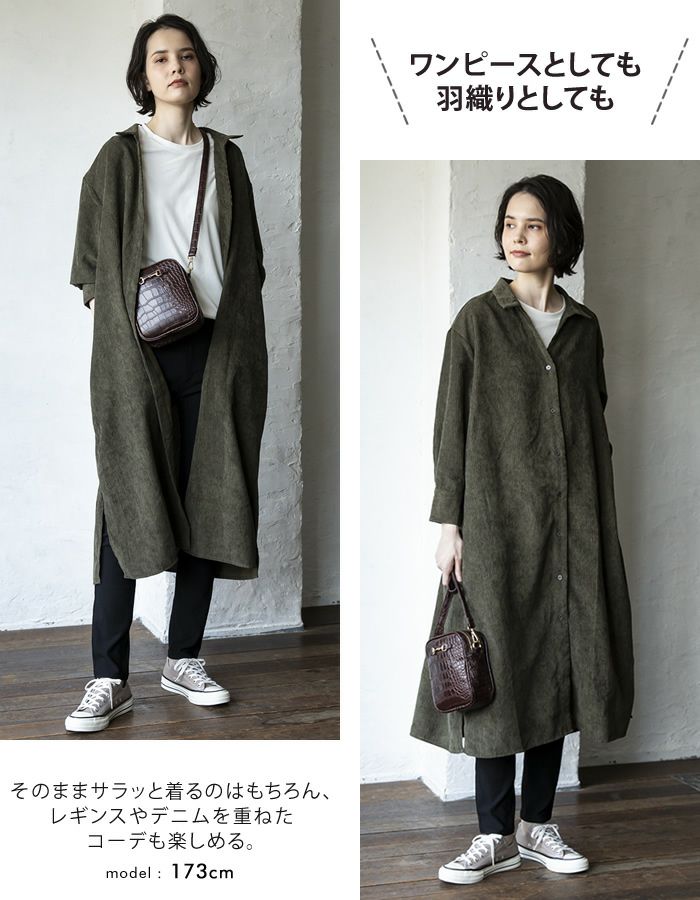 【最終値下げ価格】コーデュロイシャツワンピース レディース 春 秋 冬 長袖 ロングシャツ | アクアガレージ aquagarage