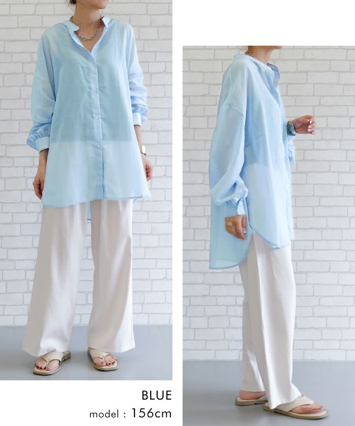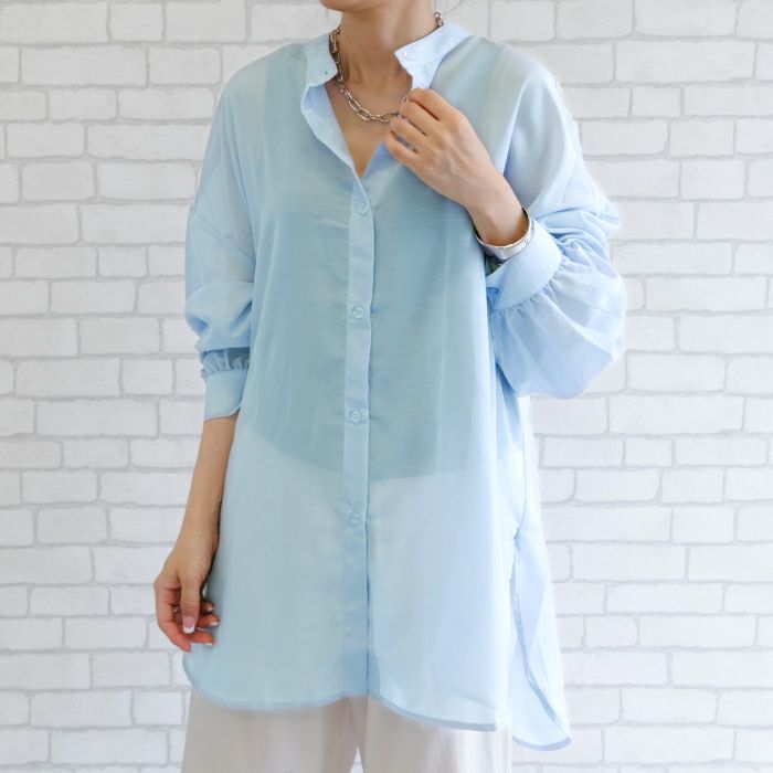 送料無料 バンドカラーロングシアーシャツ レディース 春 夏 秋 長袖 ≪ゆうメール便配送20・代引不可≫ | アクアガレージ aquagarage