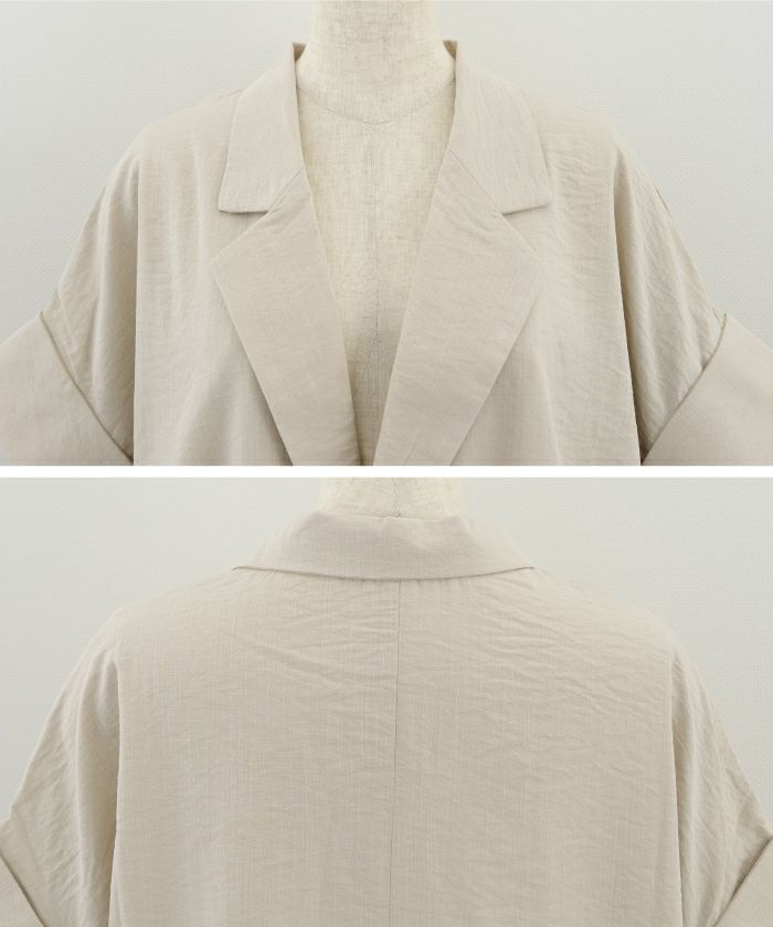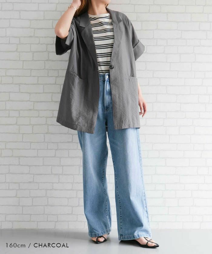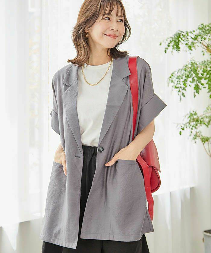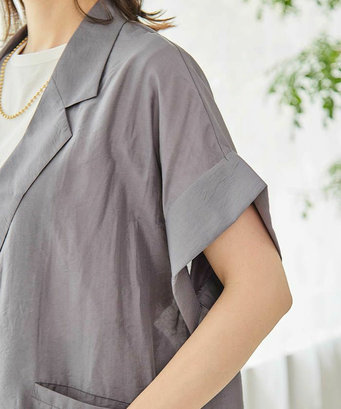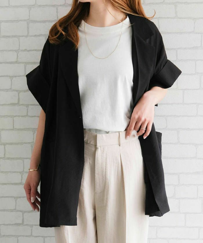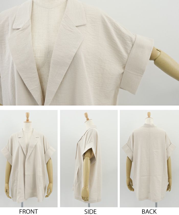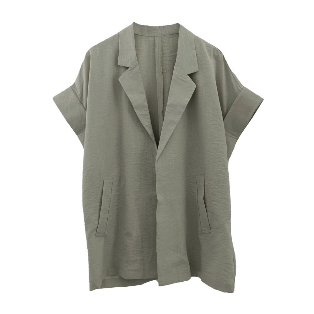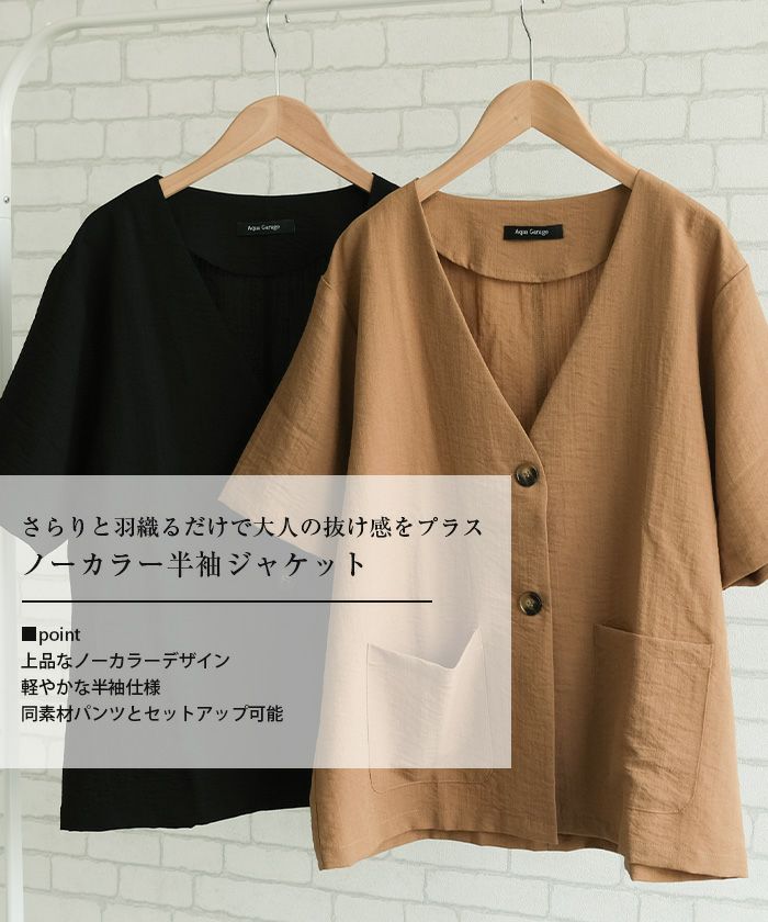 送料無料 ノーカラー半袖ジャケット 春 夏 秋 M | ≪ゆうメール便配送20・代引不可≫アクアガレージ aquagarage