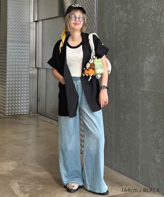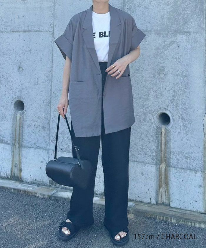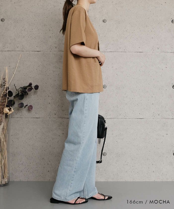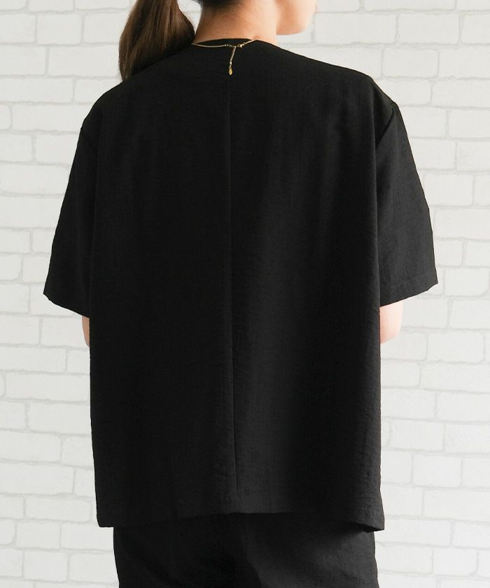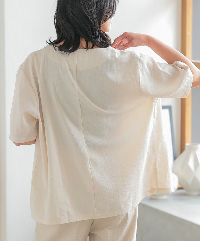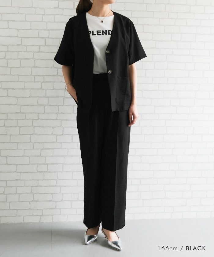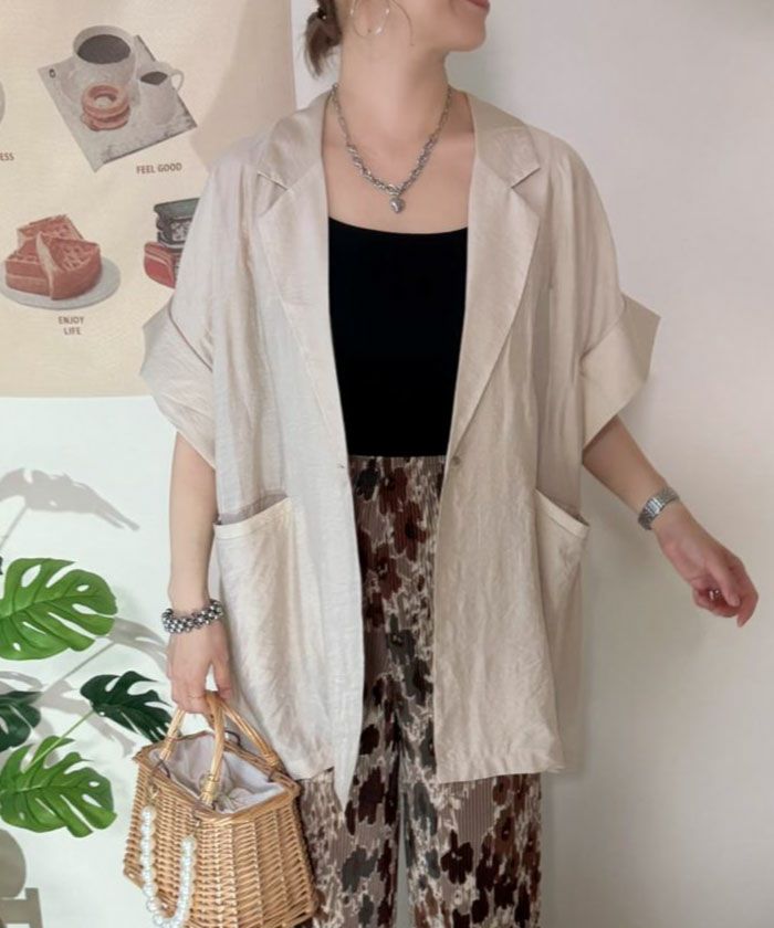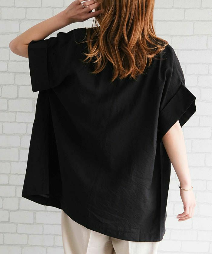 送料無料 ノーカラー半袖ジャケット 春 夏 秋 M | ≪ゆうメール便配送20・代引不可≫アクアガレージ aquagarage
