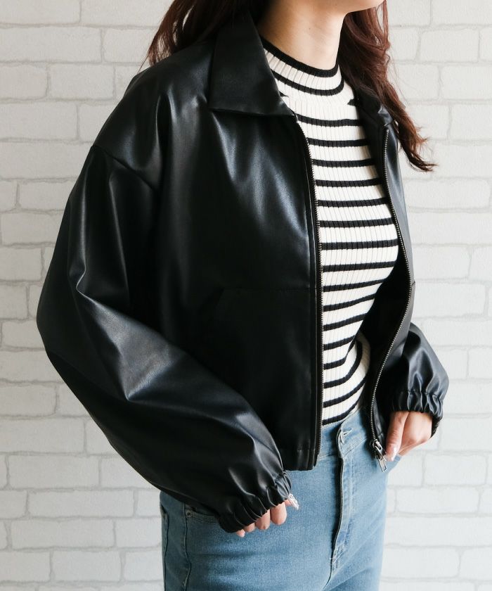 【最終値下げ価格】ショート丈フェイクレザージャケット レディース 春 秋 冬 | アクアガレージ aquagarage